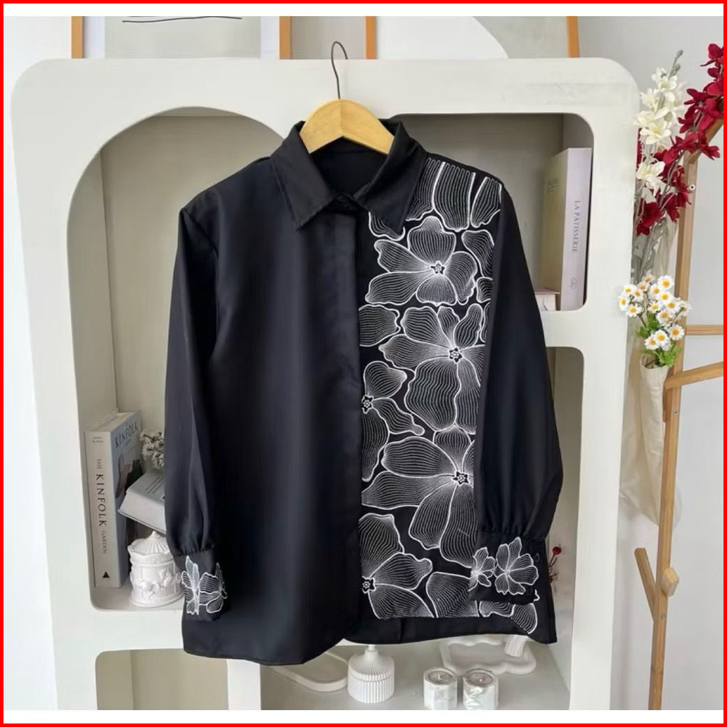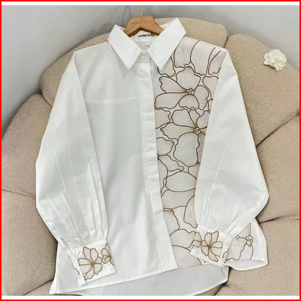 Luisa Shirt Atasan Kemeja Wanita Bordir Premium Kemeja Wanita Aesthetic Earth Tone Atasan Kemeja Wanita Formal Casual Pa