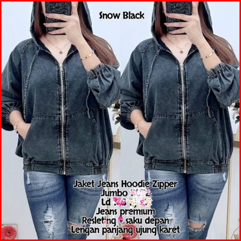 Jaket Jeans Hoodie Sleting Jumbo Kekinian Denim Retro