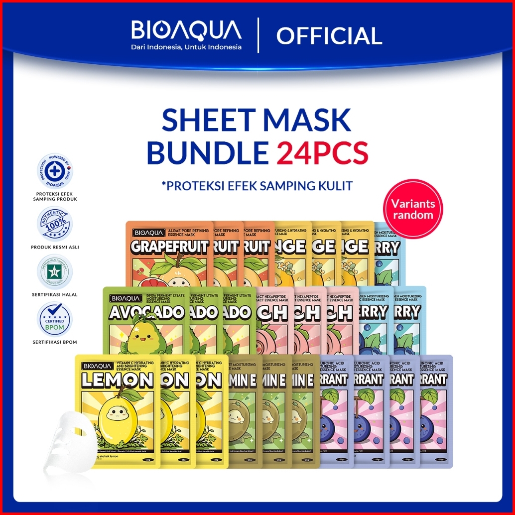 Bioaqua Sheet Mask Paket Masker Muka Glowing Masker Wajah Bpom Organik Whitening Brightening Anti-acne Masker Jerawat Da