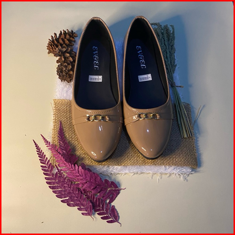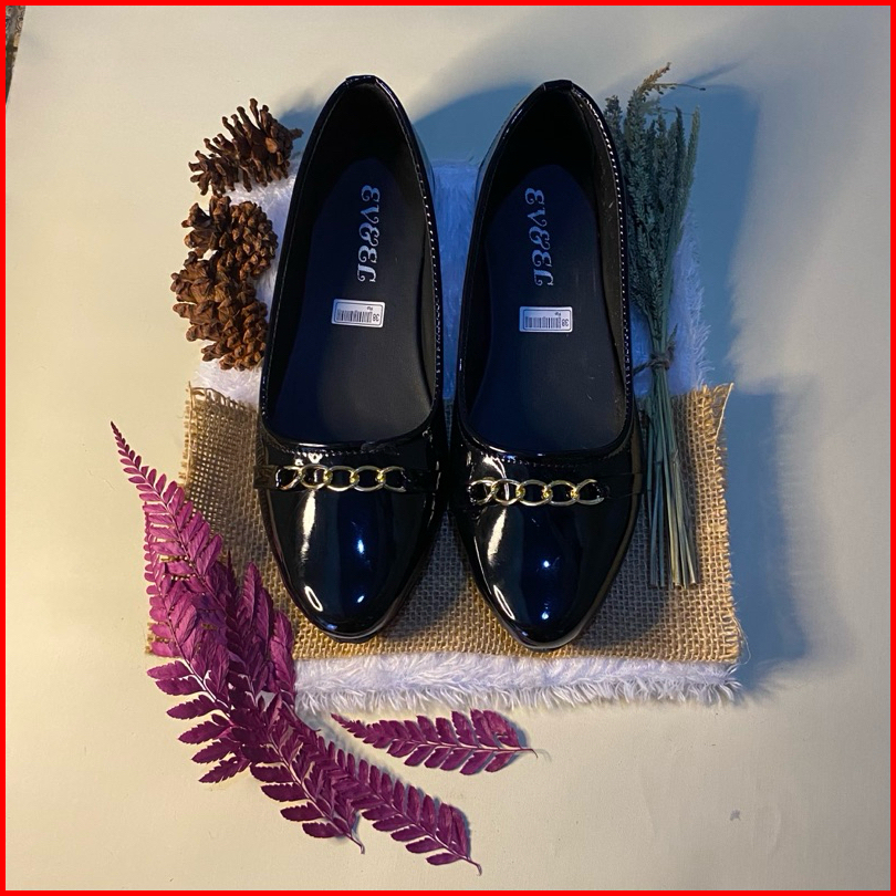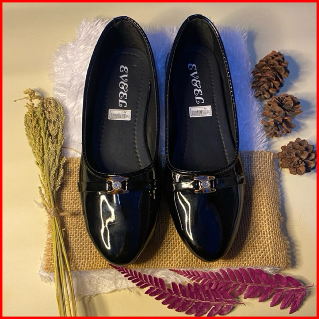 Ev El Sepatu Wanita Flat Shoes Kekinian Terbaru Sepatu Wanita Sekolah Kerja Acara Formal Warna Hitam Glossy Murah