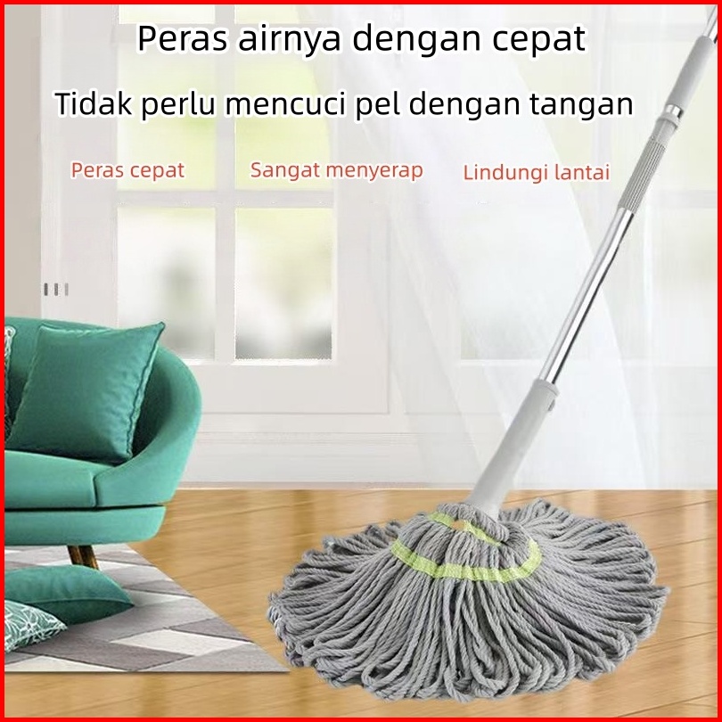 Pel Besar Tidak Perlu Dicuci Dengan Tangan Pel Cepat Kering Pel Serat Bambu Tali Pilin Yang Berputar Sendiri Pel Pembers