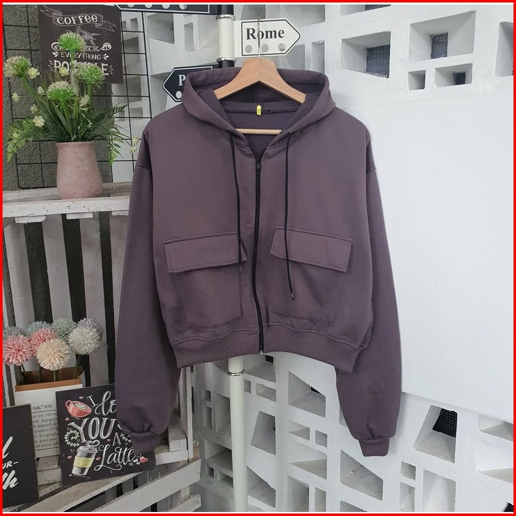 Jaket Wanita Zarra Croope Hoodie Jaket - Jaket Wanita Terbaru