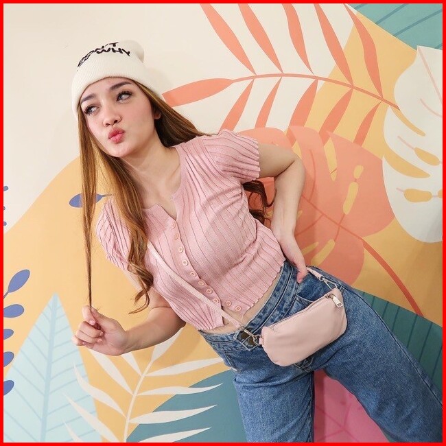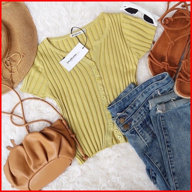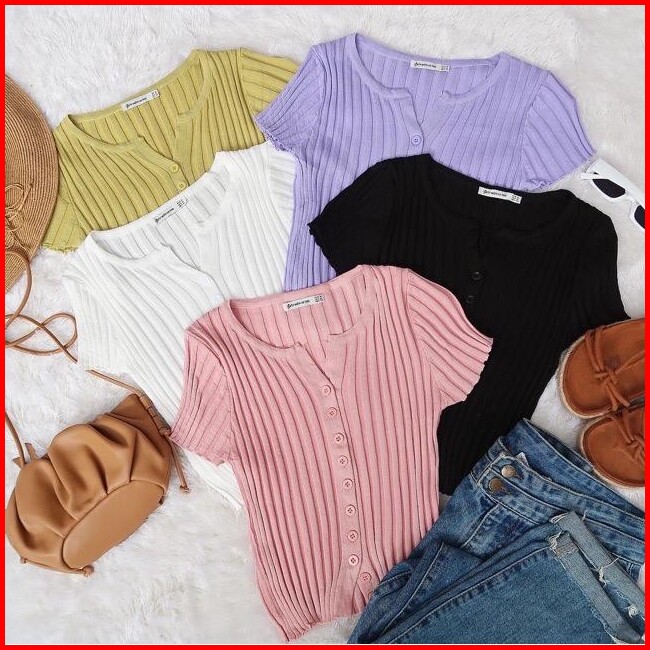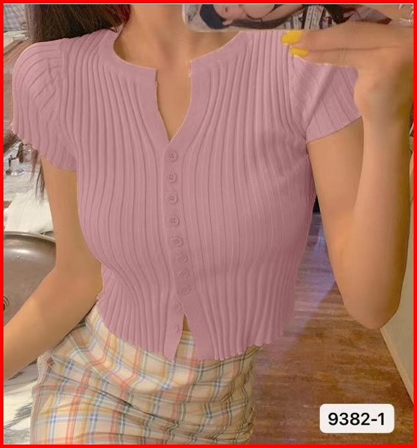 Girlfashionstory Original Imp Strady 9382-1 Crop Full Button Top