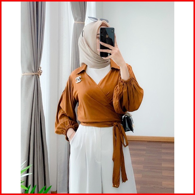 Girlfashionstory Original New Cropy Long Rayon Diamond Wrap Atasan