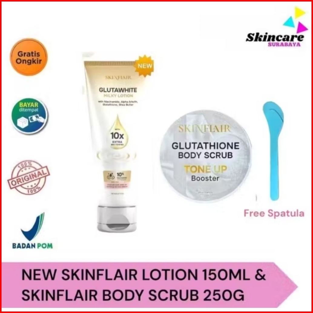 Skinflair Bundling Lotion Scrub Glutawhite Milky Body Lotion Body Scrub Skinflair Tonr Up Booster Mecerahkan Tubuh Bpom