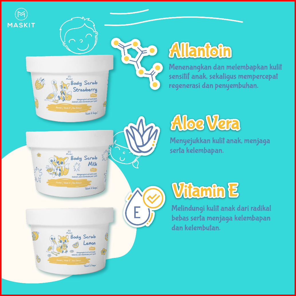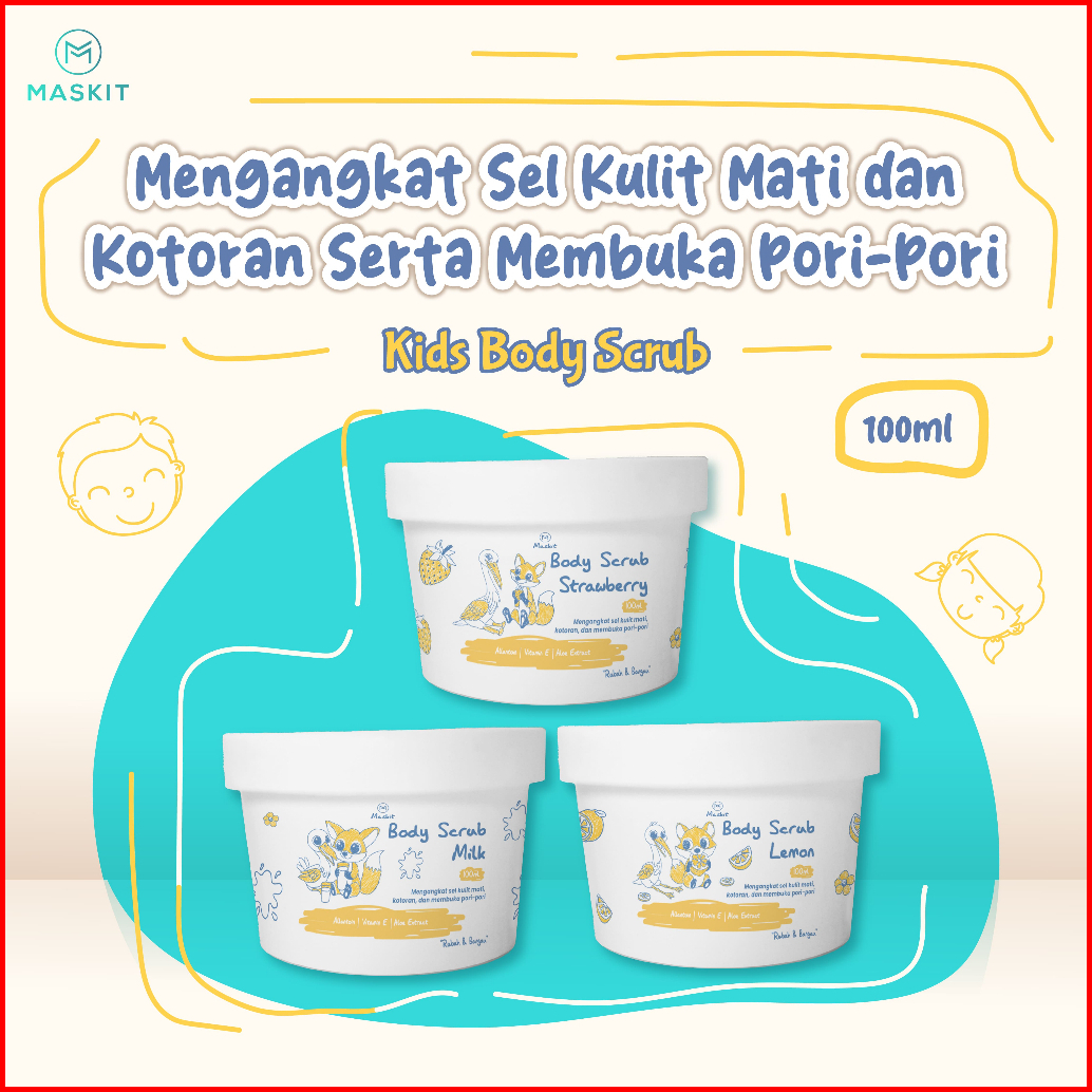 Kids Teens Body Scrub Strawberry Milk Lemon - Scrub Badan Untuk Anak 100ml - Maskit