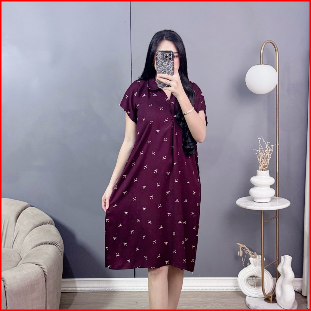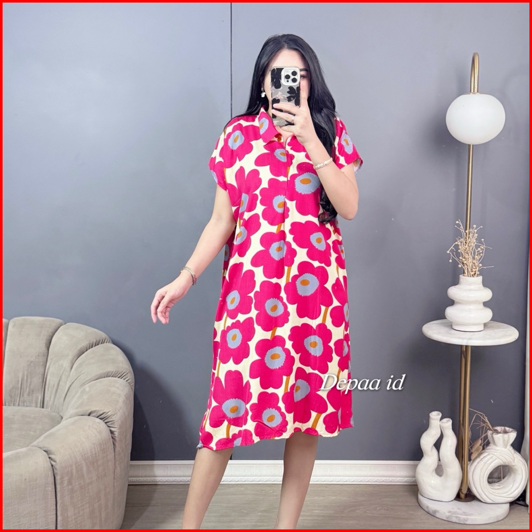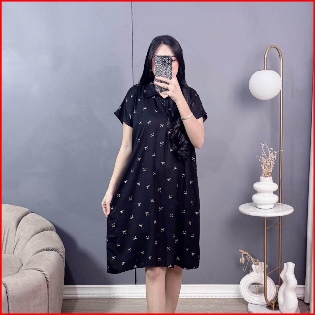 Dress Daster Motif Terbaru - Daster Kekinian Matt Rayon Tebal Model Kerah Resleting Depan Busui Friendly