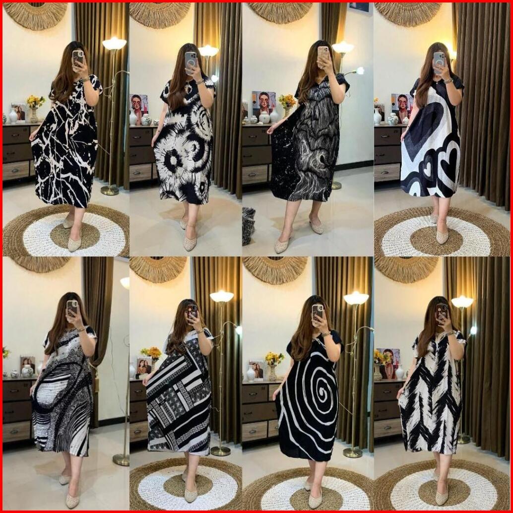 Narisha - Daster Luna Elegante Rayon Maxi Busui Monochrome
