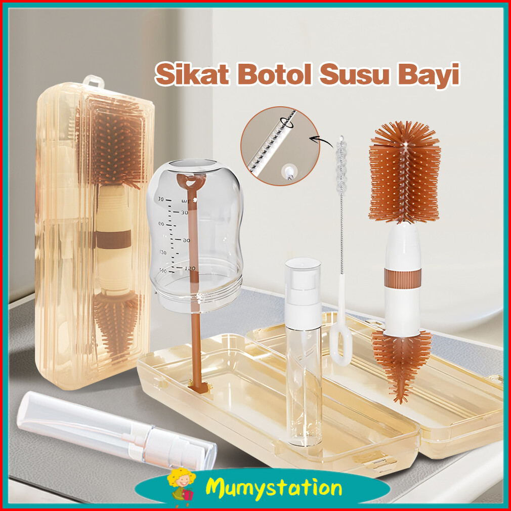 Mumystation 4in1 Sikat Pembersih Botol Susu Bayi Silikon Dot Sedotan Sikat Baby Botol Susu Free Box