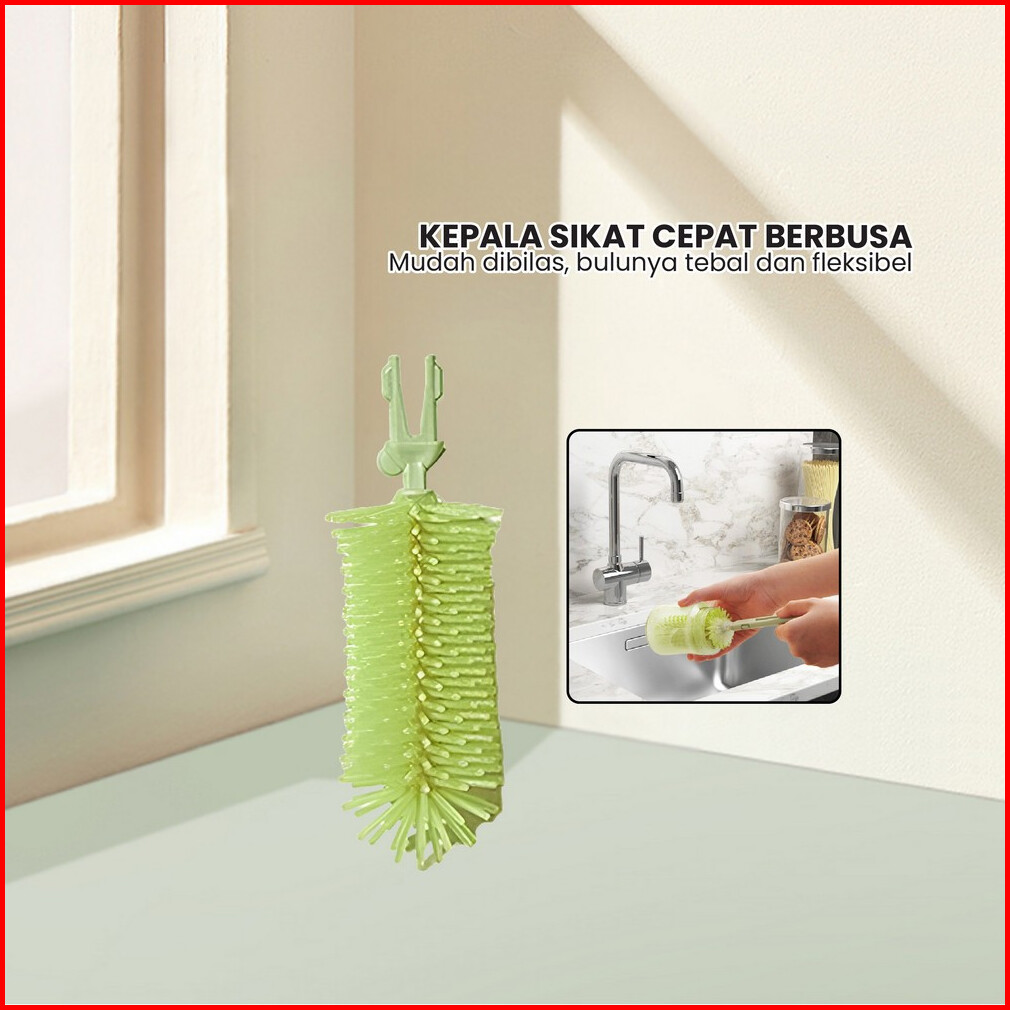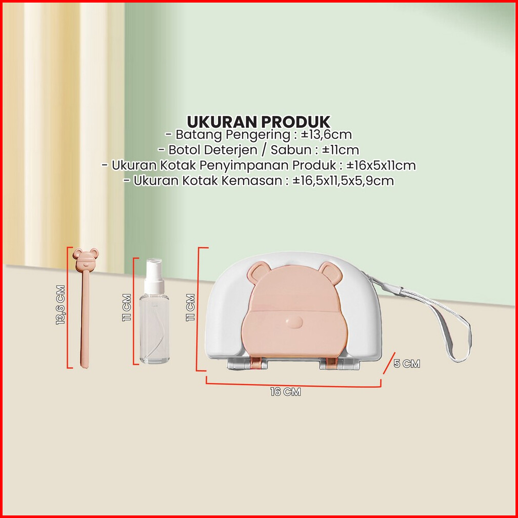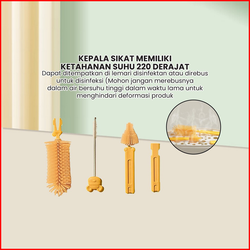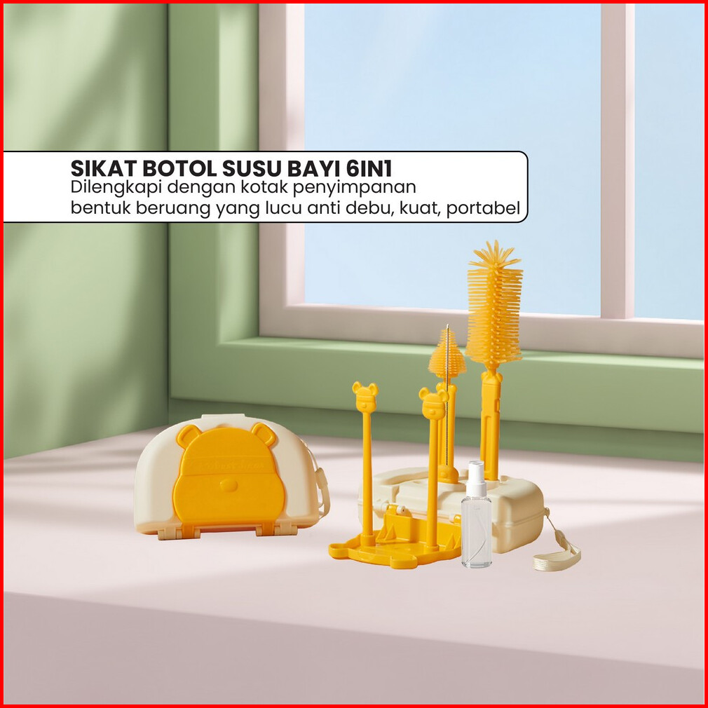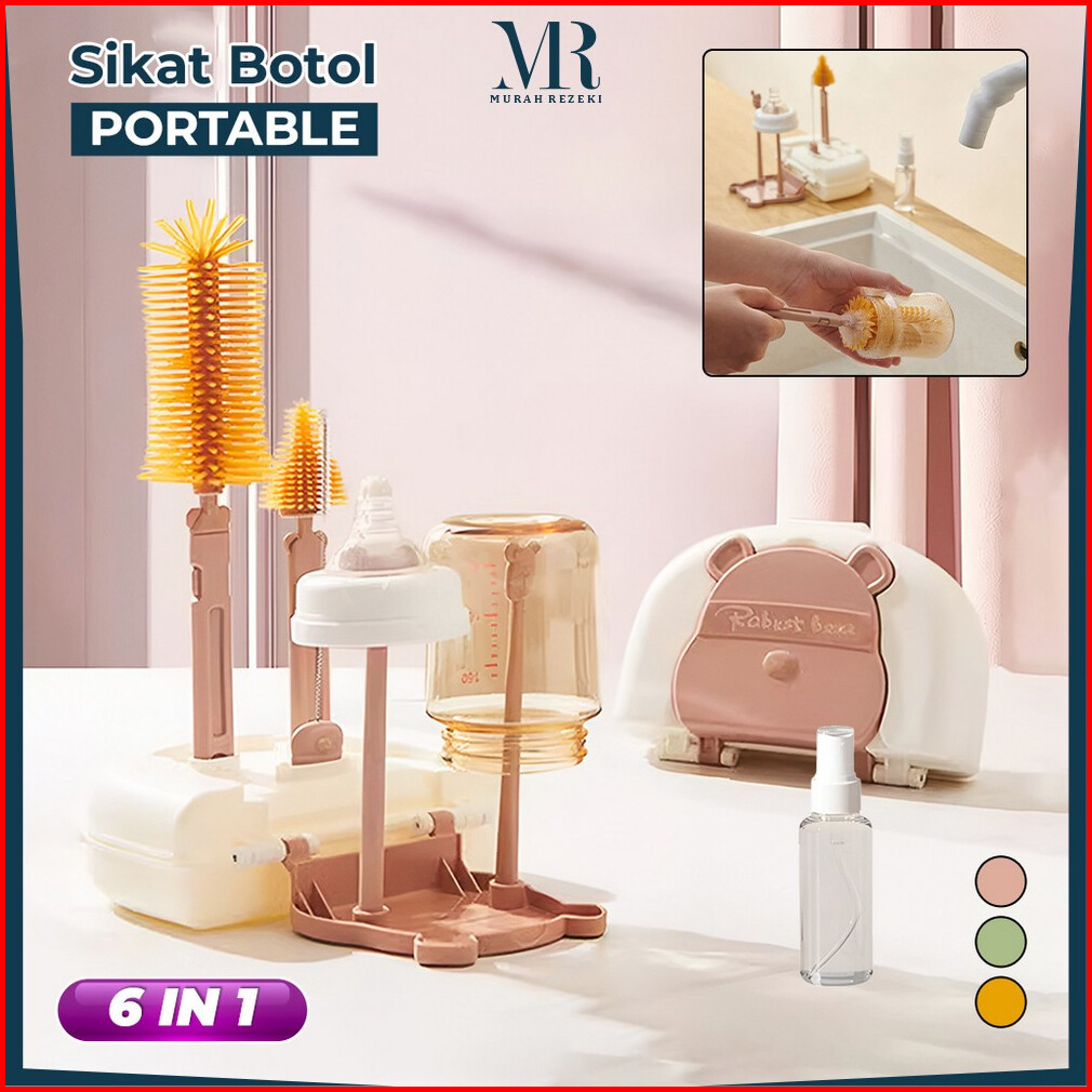 Sikat Botol Susu Bayi 6in1 With Drying Rack Bear Sikat Botol Dengan Rak Pengering Botol Portable Set Bottle Brush Travel
