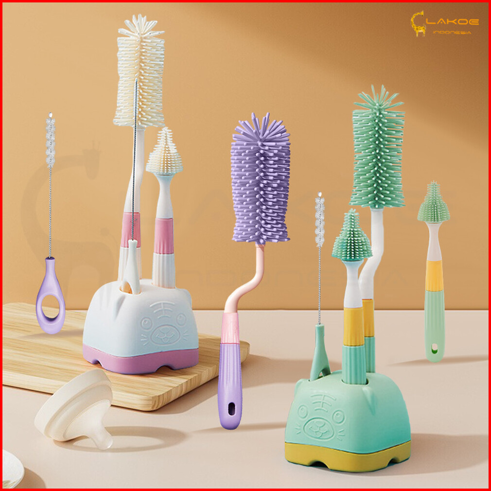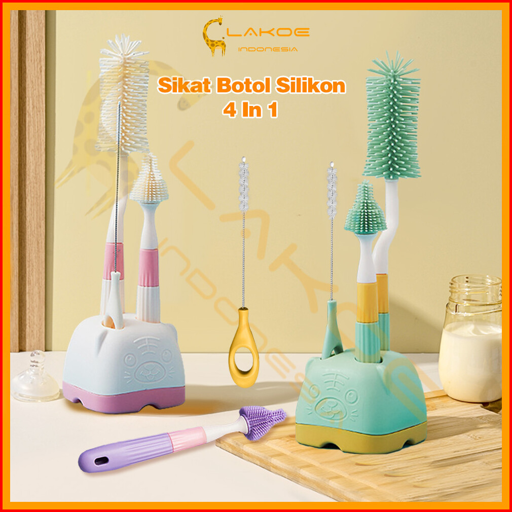 Lakoe 4 In 1 Sikat Botol Susu Bayi Silikon Pembersih Dot Sikat Botol Bayi Bottle Brush Set Sikat Botol Bayi Dengan Rak P