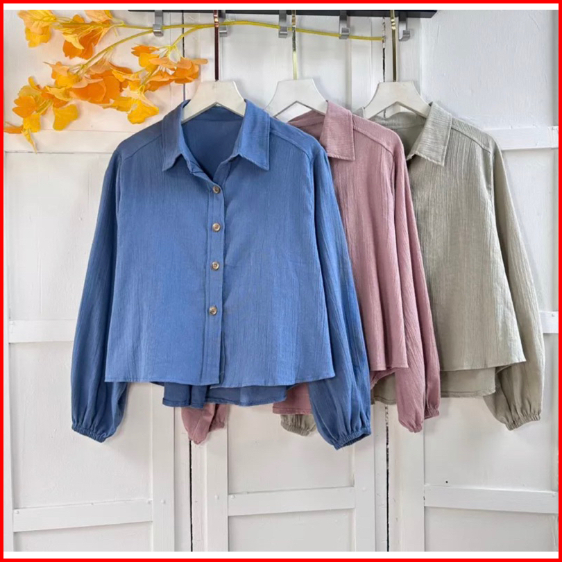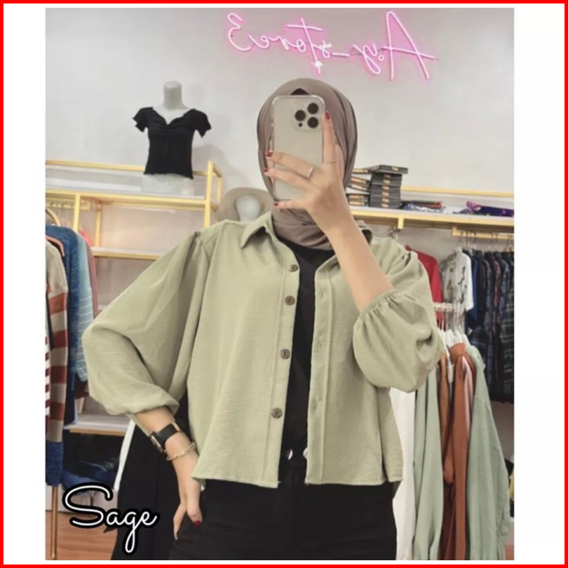 Hanya Di Kemeja Seeffa Crop Katun Polly Premium Micro Wanita Lengan Balon Hanin Crop Keisya Crop Belfie Crop
