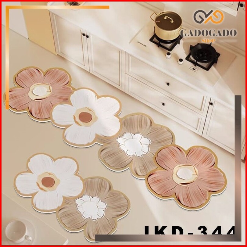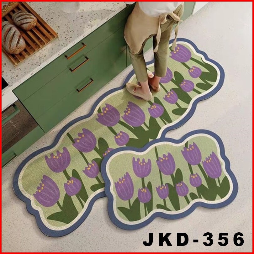 Ggs Hl0600 Keset Dapur 2 In 1 Panjang Dan Pendek 40 X 120 Cm Menyerap Air Lembut Keset Kaki Keset Dapur Motif Bunga Y363