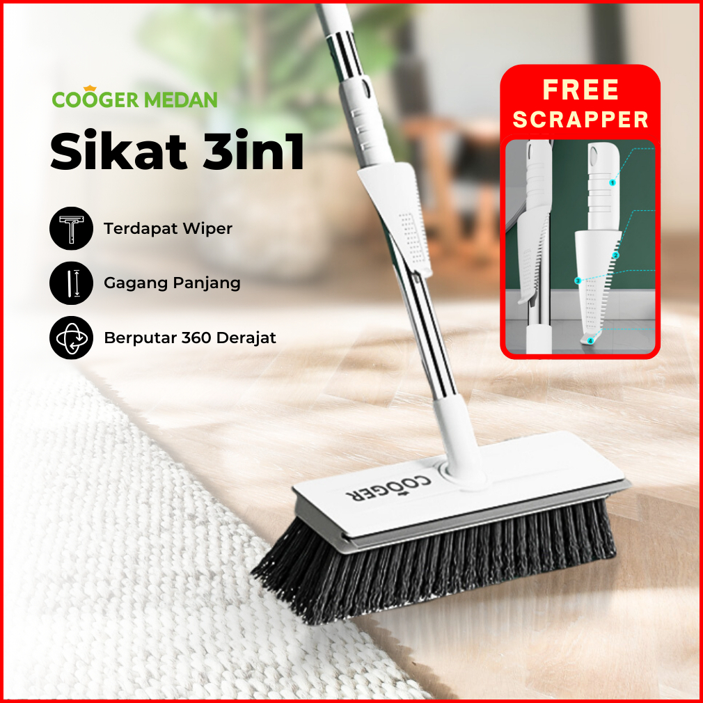 Cooger Medan Sikat 3in1 Pembersih Kamar Mandi Dengan Wiper Sikat Wc Serbaguna Praktis Sikat Lantai