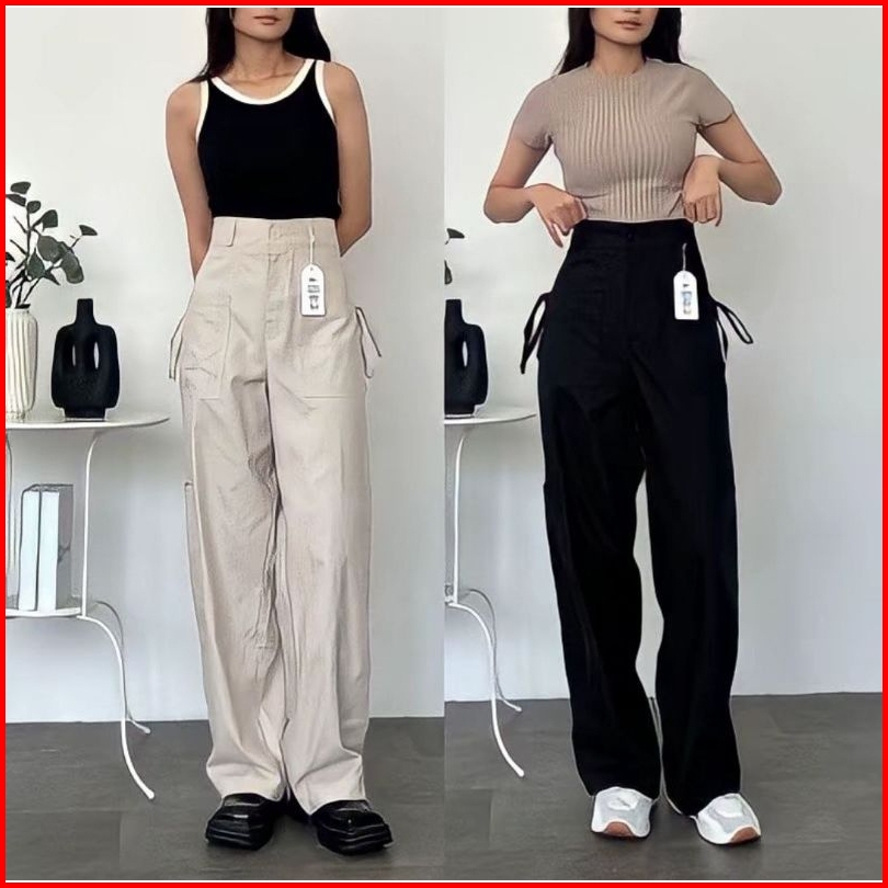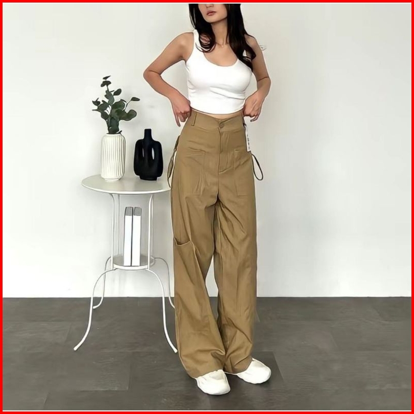 Clay Pants - Celana Highwaist Loose Cargo - Celana Cargo Wanita Terbaru - Baggy Pants