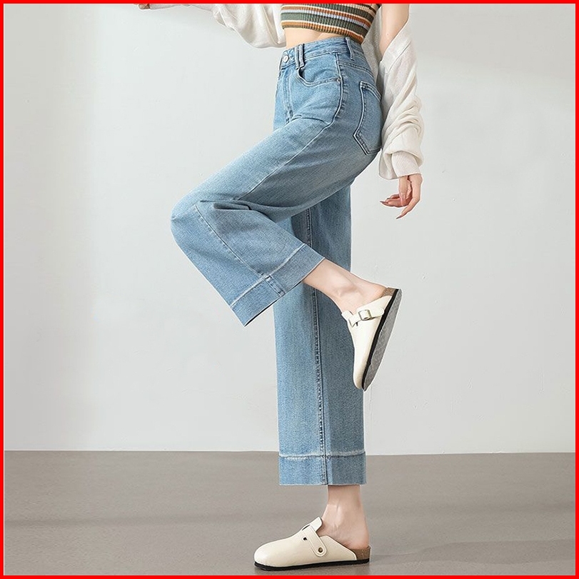 Celana Jeans Highwaist Wanita-celana Jeans Lurus Longgar Pinggang Tinggi Celana High Waist Fashion Korean Style