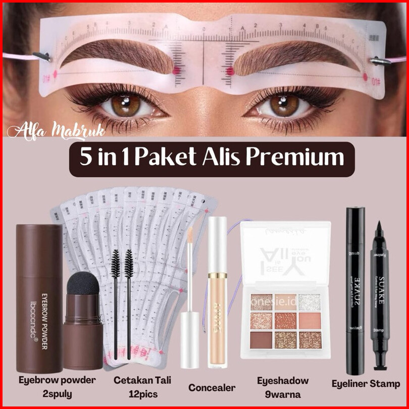 F 5 In 1 Eyebrow Powder Cetakan Alis Paket Ngalis 5 In 1 Free Eyeliner Stamp Eyeshadow 9warna Butami Fashion