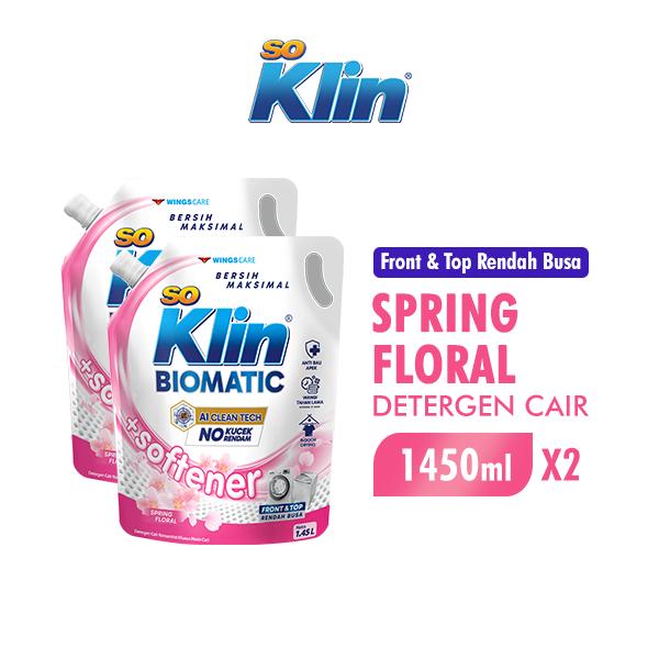 SOKLIN Biomatic +Softener Floral Spring Detergen Cair 1450 ML x2