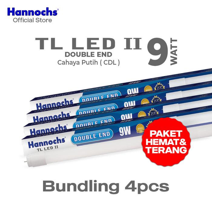 Hannochs Lampu TL LED II Double End Tube Light - Cahaya Putih isi 4 Pcs - 9 Watt