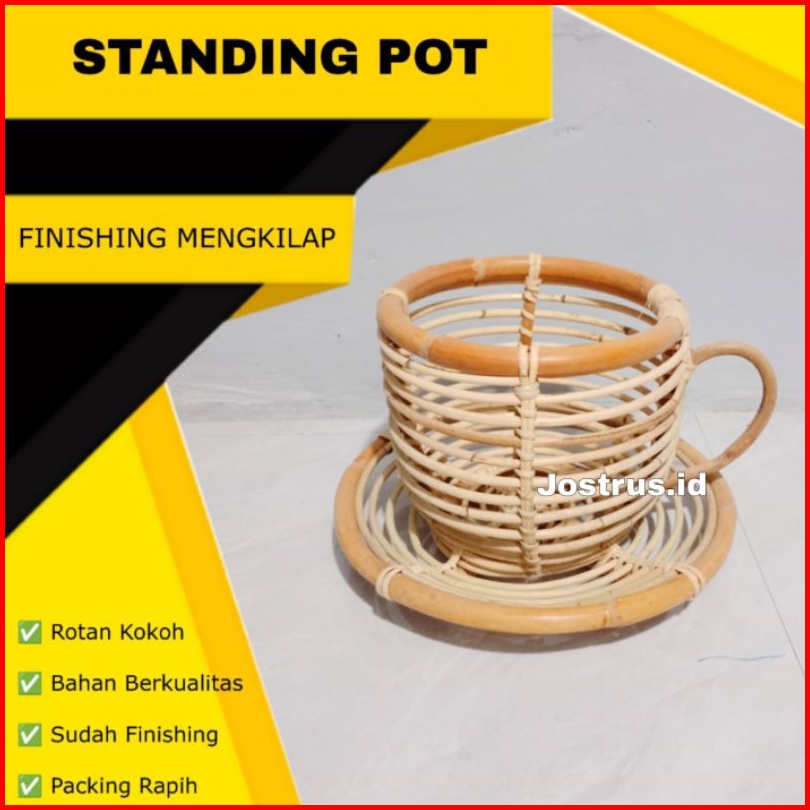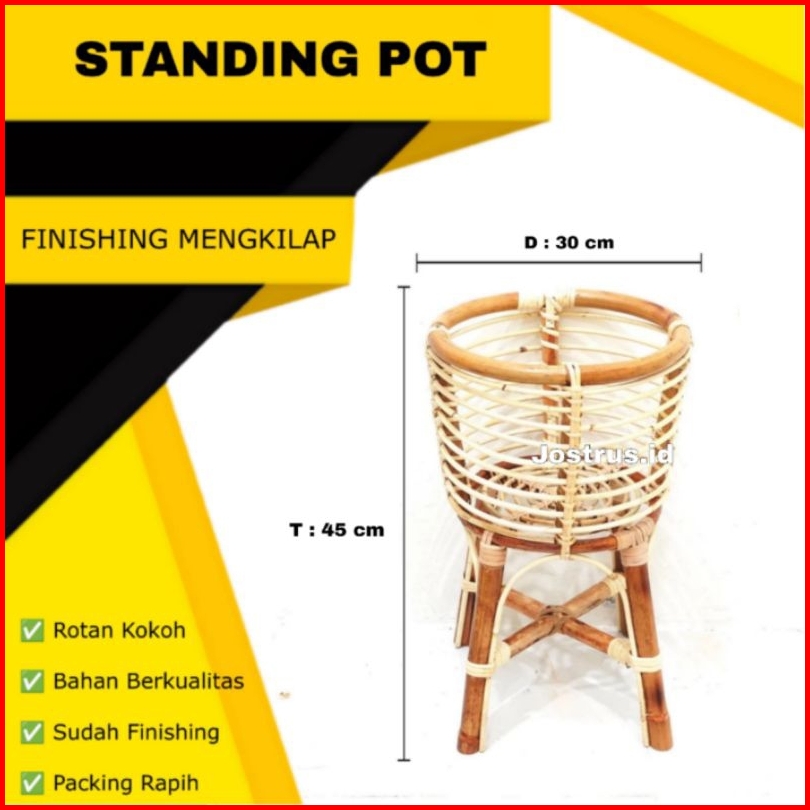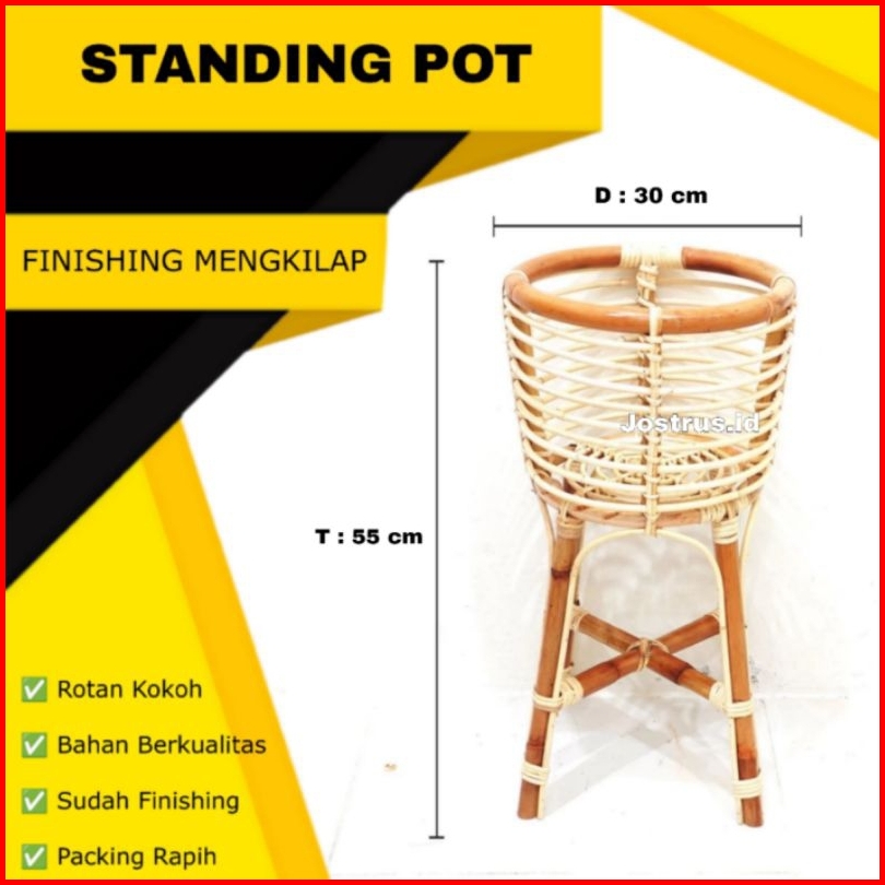 Standing Pot Ratan Finishing Mengkilap Tempat Wadah Vas Bunga Dekorasi Sudut Studio Foto Aesthetic