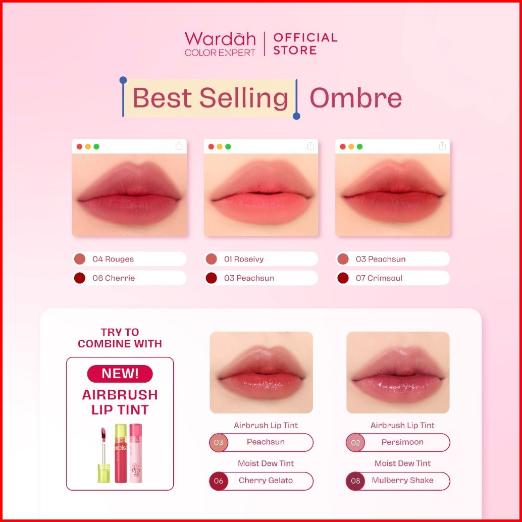 Wardah Airbrush Lip Tint - Soft-blur Finish-longlasting-lightweight-hydrates -tahan Lama 24 Jam - Lip Stain - Lipgloss -