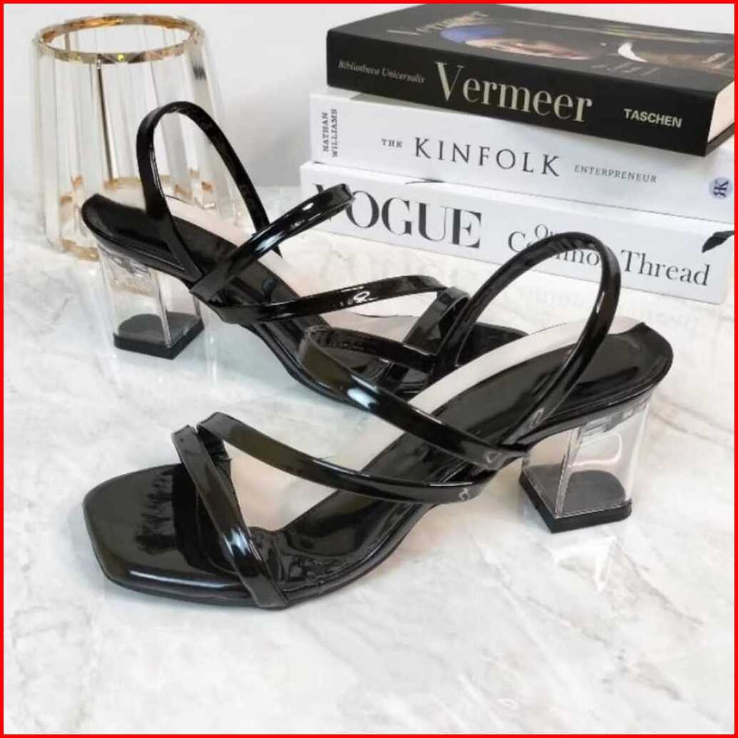 Juragan Online - Queensha Sandal Wanita High Heels Hak Kaca Cantik Kekinian