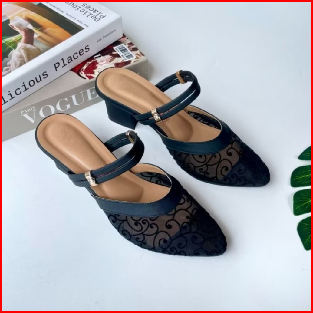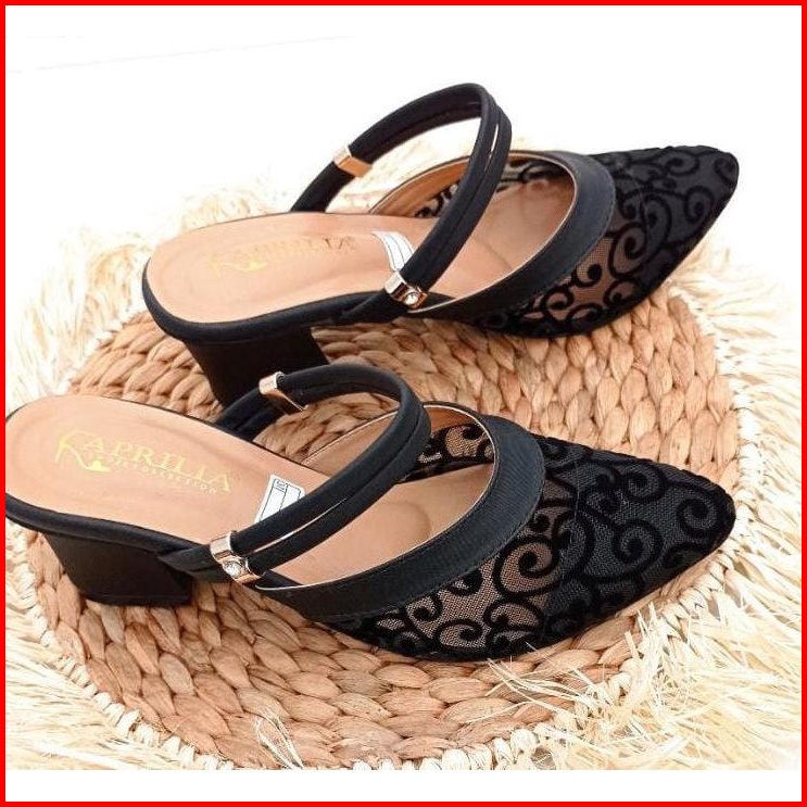 Juragan Online - Pump Heels Intan Sandal Pesta Wanita Bahan Brukat Jala Payet Cantik Pas Untuk Pesta