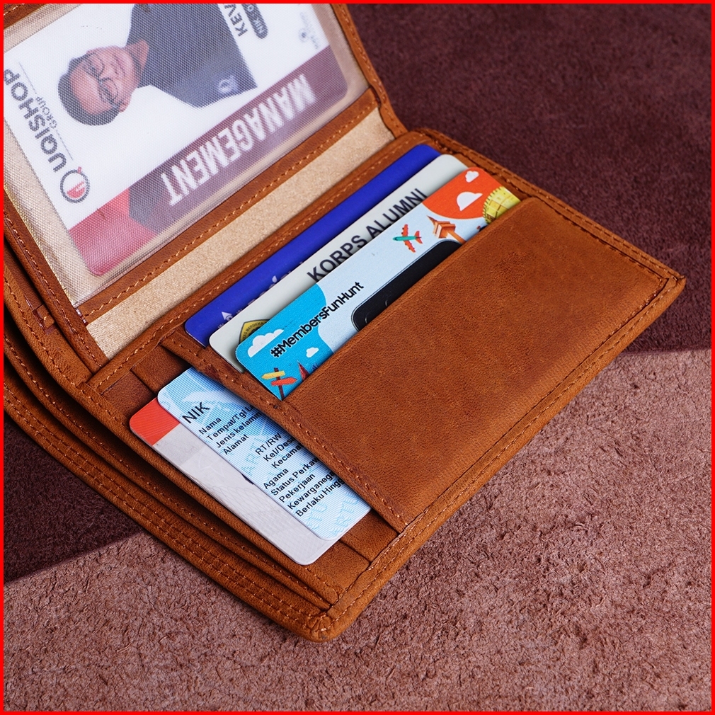 D003 Qi - Dompet Lipat Pria Cowok Kulit Asli Kualitas Import Dalam Furing 16 Slot Kartu 1slot Koin