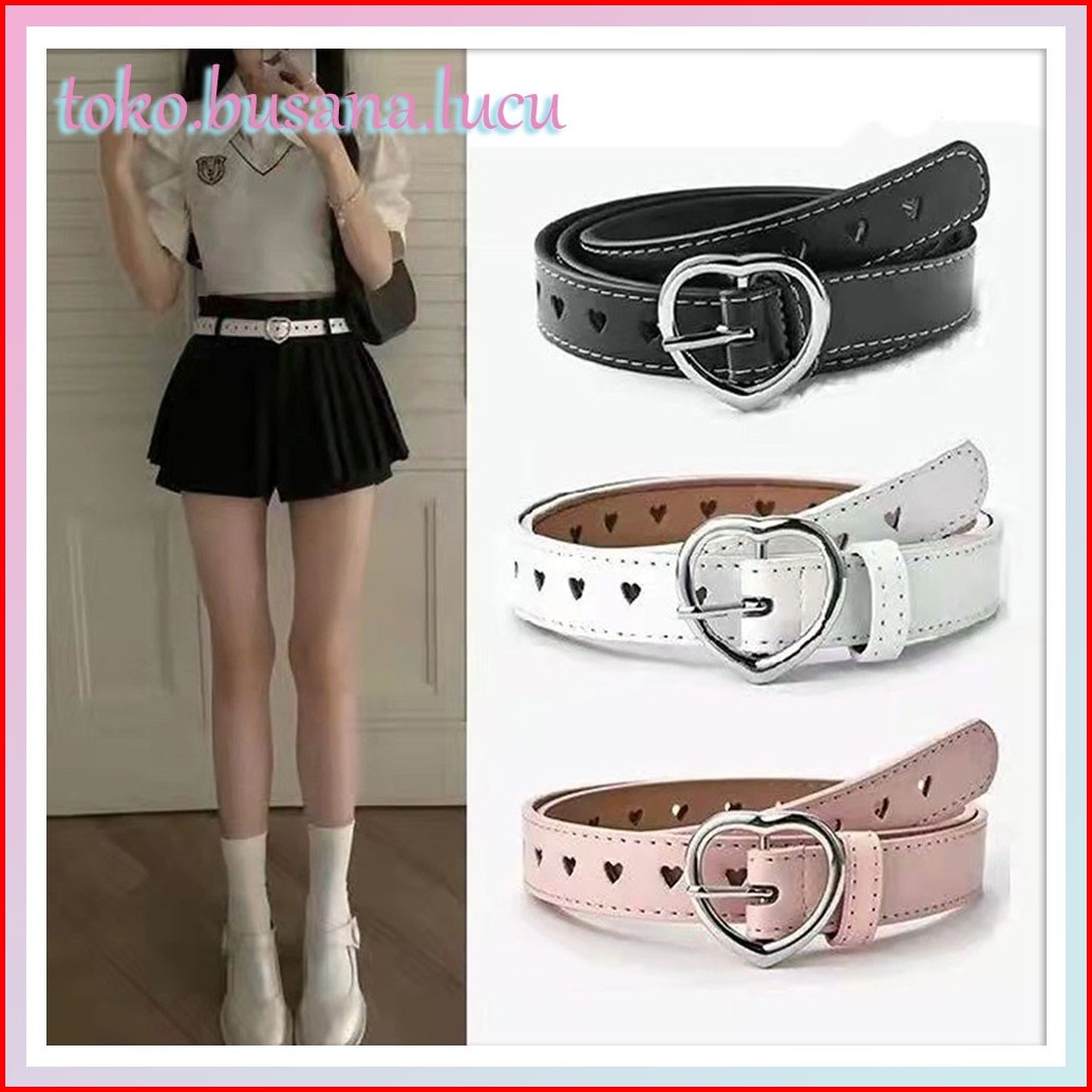 Ikat Pinggang Kencil Kulit Wanita Fashion Gesper Hati Belt Y2k Vintage Simple Dan Serbaguna Untuk Dress Rok Sabuk Wanita