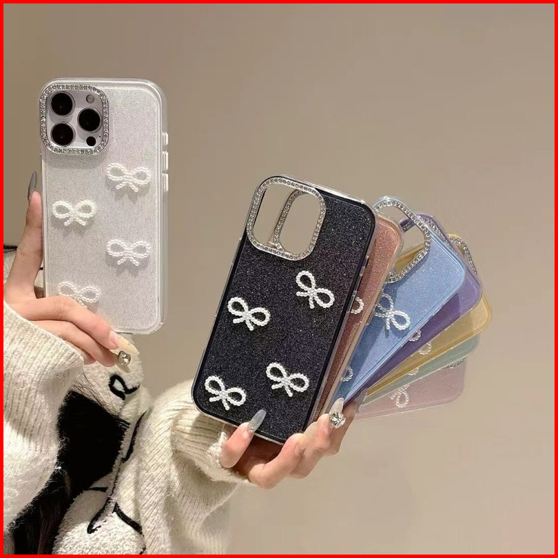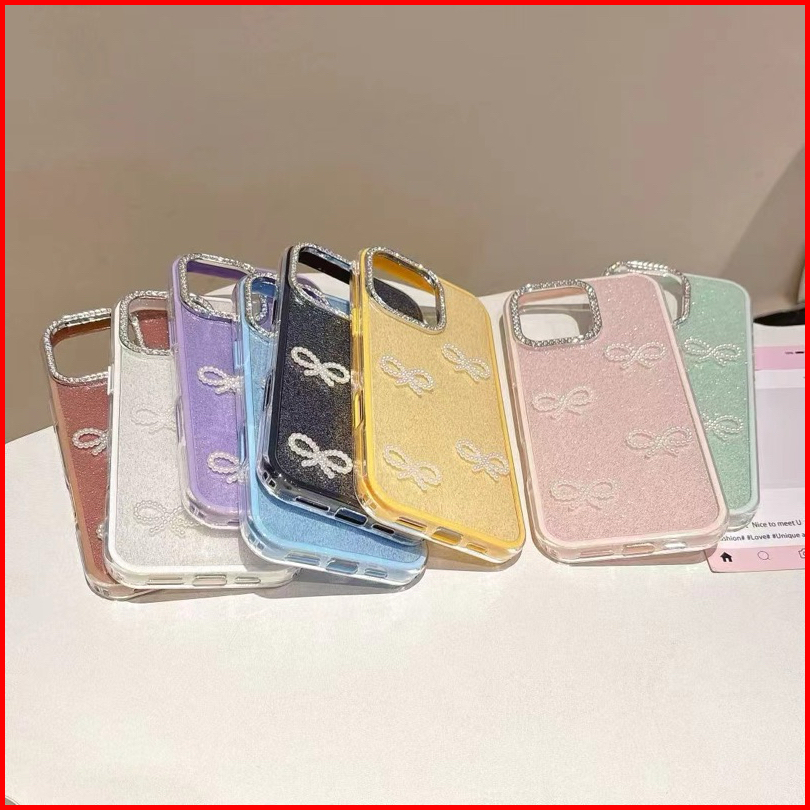 Glitter Ribbon Case Compatible For Iphone 11 12 13 14 15 16 17 Plus Pro Max Air Casing Lucu