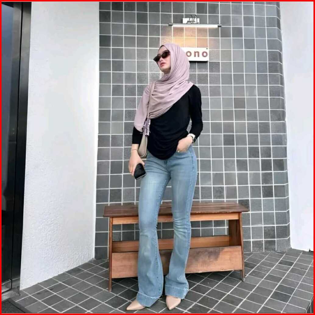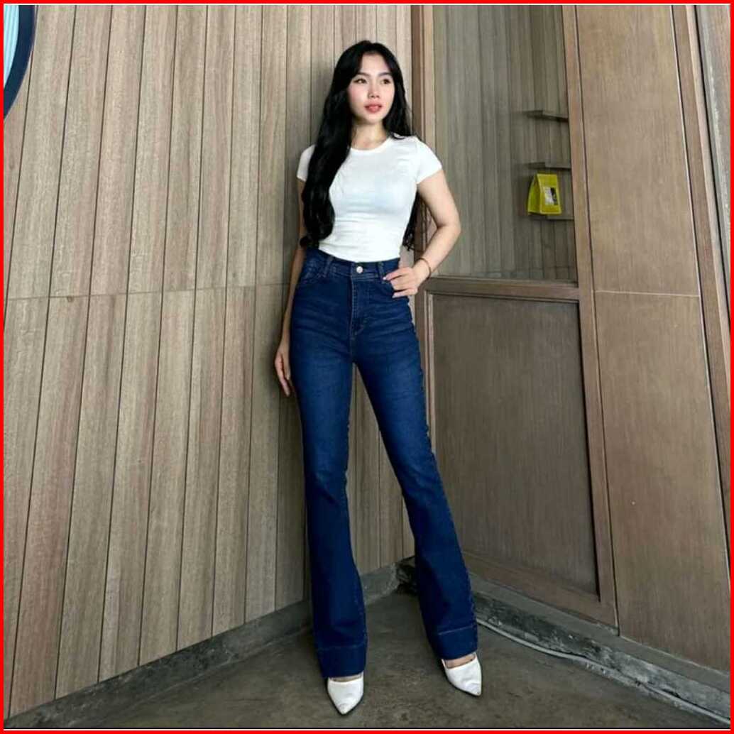 Jennie -highwaist Cutbray Jeans Celana Flare Panjang Stretch Wanita Retrovintage Lipat Bawah Besar