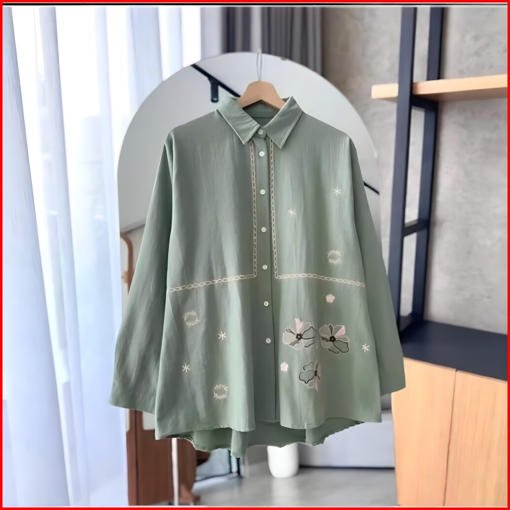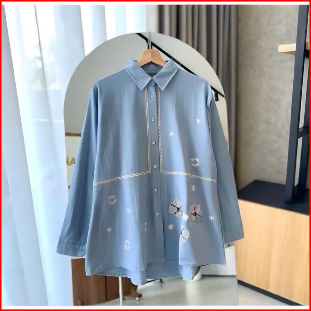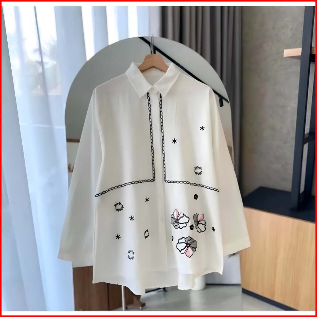 Lidia Kemeja Blouse Bordir - Atasan Wanita Kekinian Rayon Twill