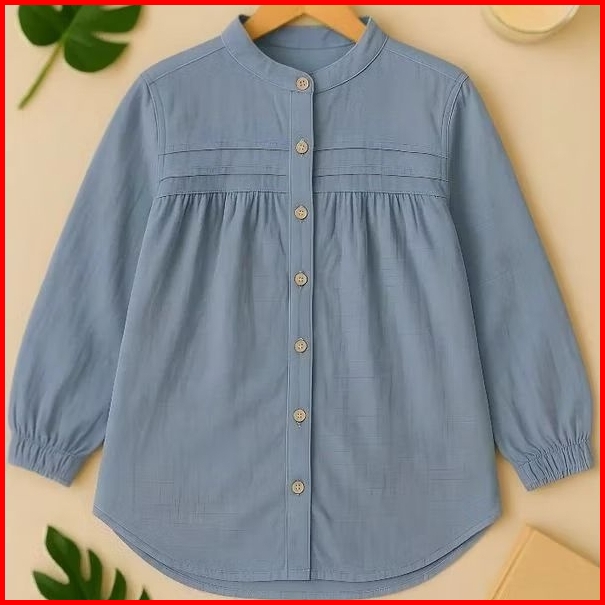Rani Blouse - Kemeja Wanita Korean Ruffle Kekinian Bahan Polo Linen Anti Kusut Lengan Panjang Jumbo