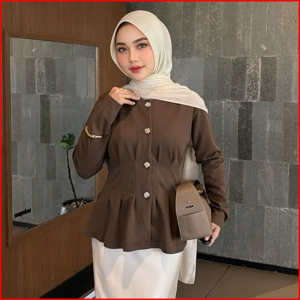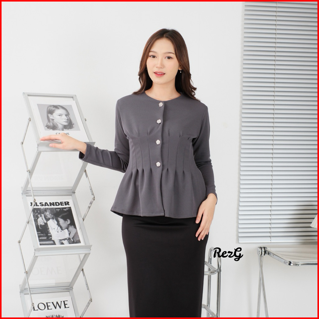 Vana Blouse Atasan Peplum Fit Body Knit Blouse Lengan Panjang Wanita