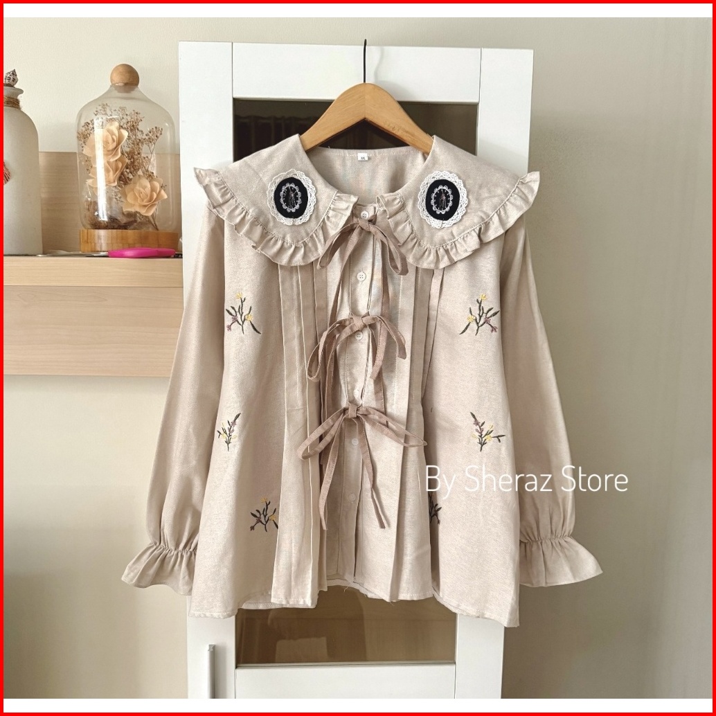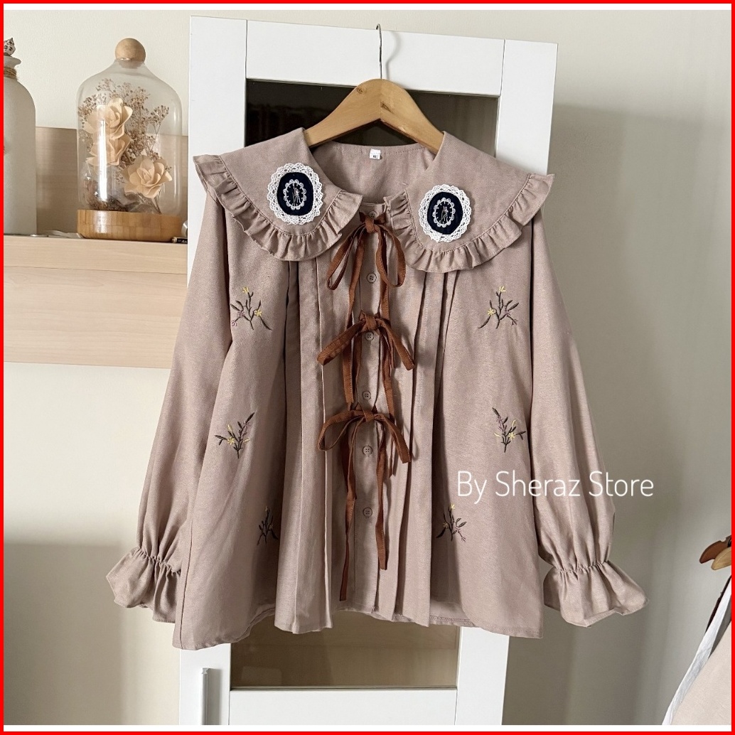 Crocheta S M L Xl Xxl Baju Atasan Blouse Katun Linen Bordir Wanita Kekinian Jumbo Ld 120 - 92 Burgundy Nude Mocha Coktu