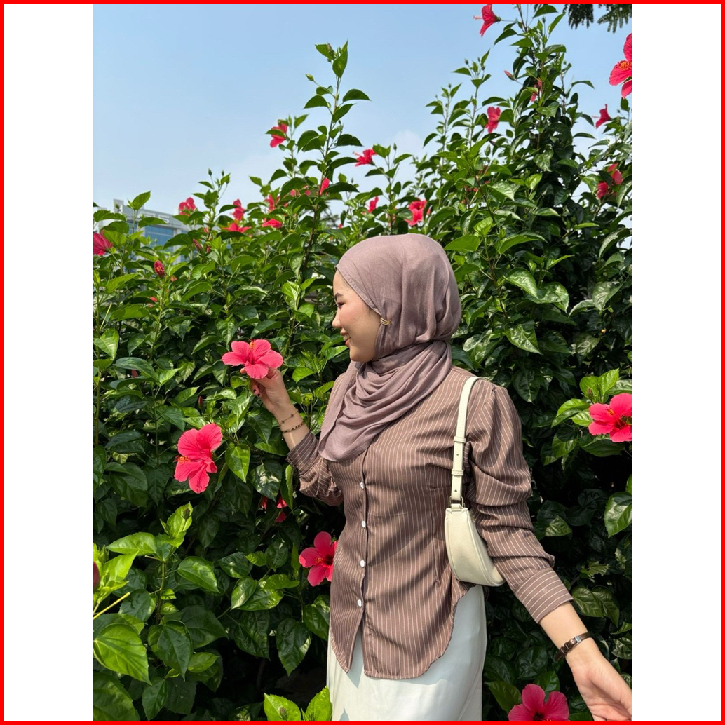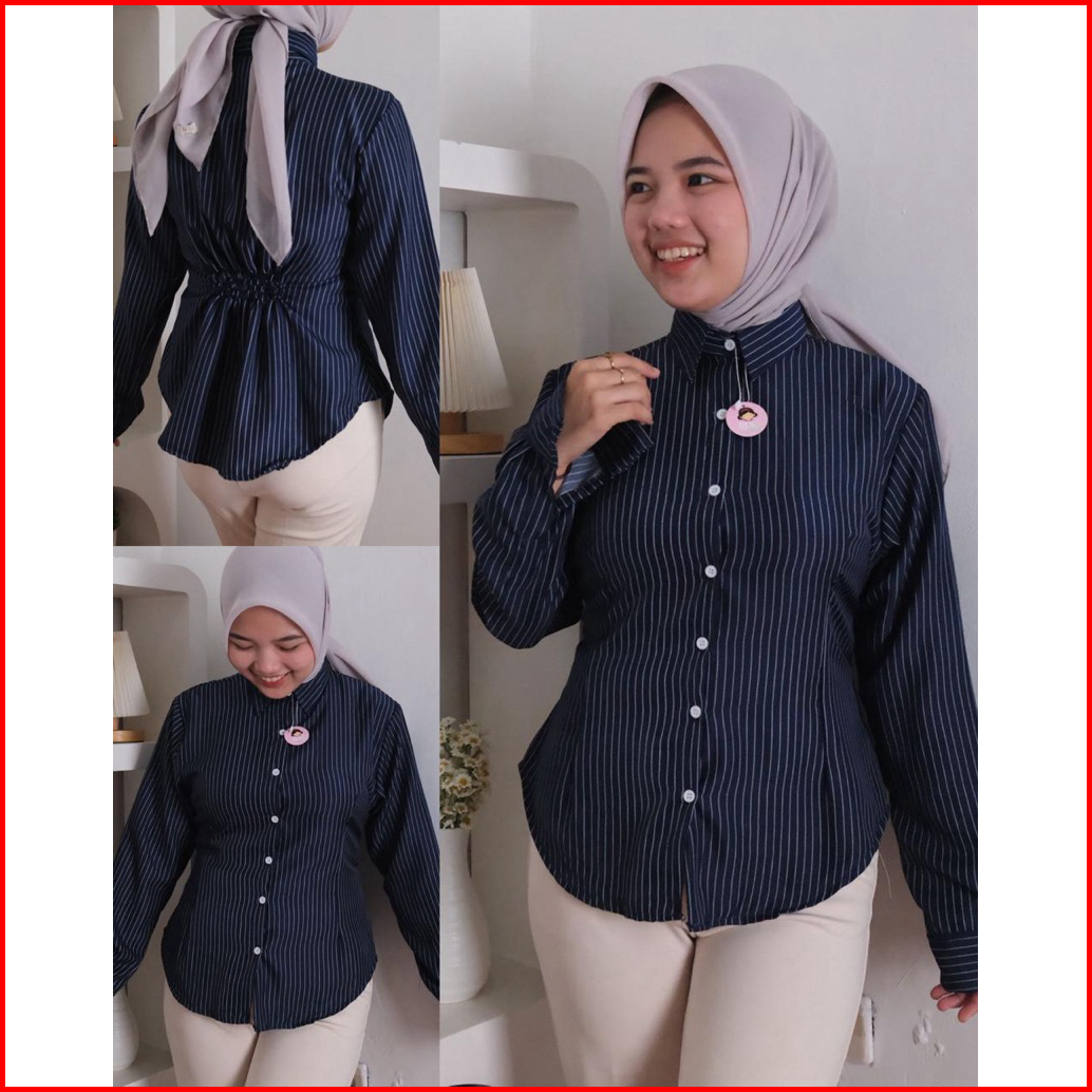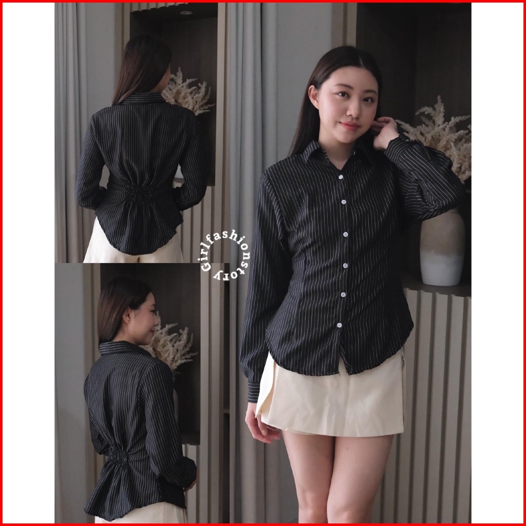 Girlfashionstory Original Belluci Series Conie Fitted Smocked Kemeja Slimfit