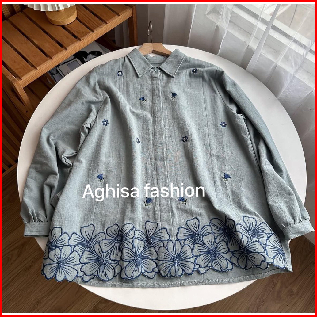 Berri Blouse Kemeja Bordir Wanita Linen Premium Shirt