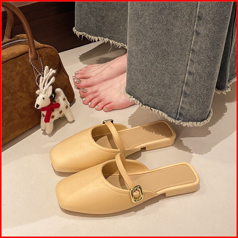 Sandal Semi Sepatu Menutup Sandal Flat Wanita Sepatu Wanita Fashionable Gaya Korea Motif Kait Fashion Sepatu