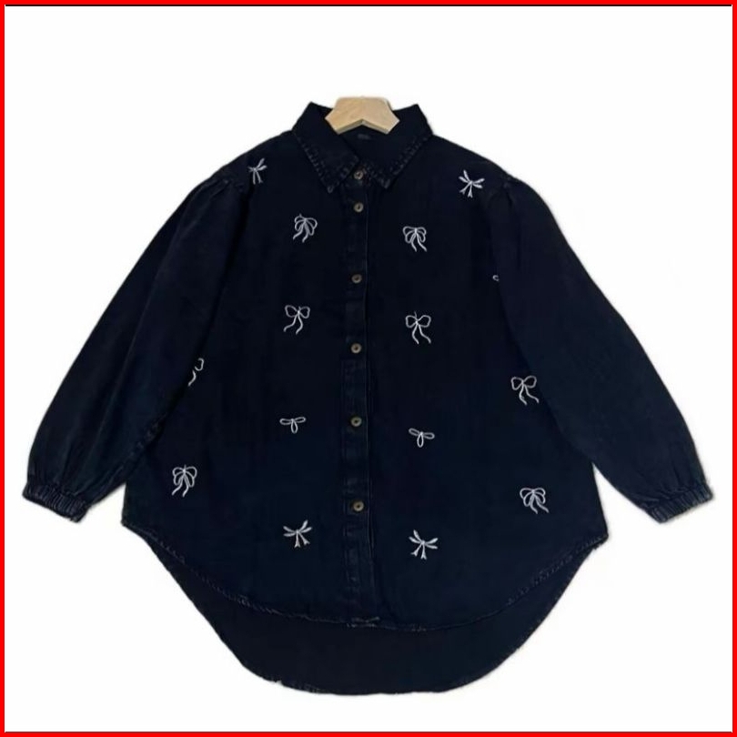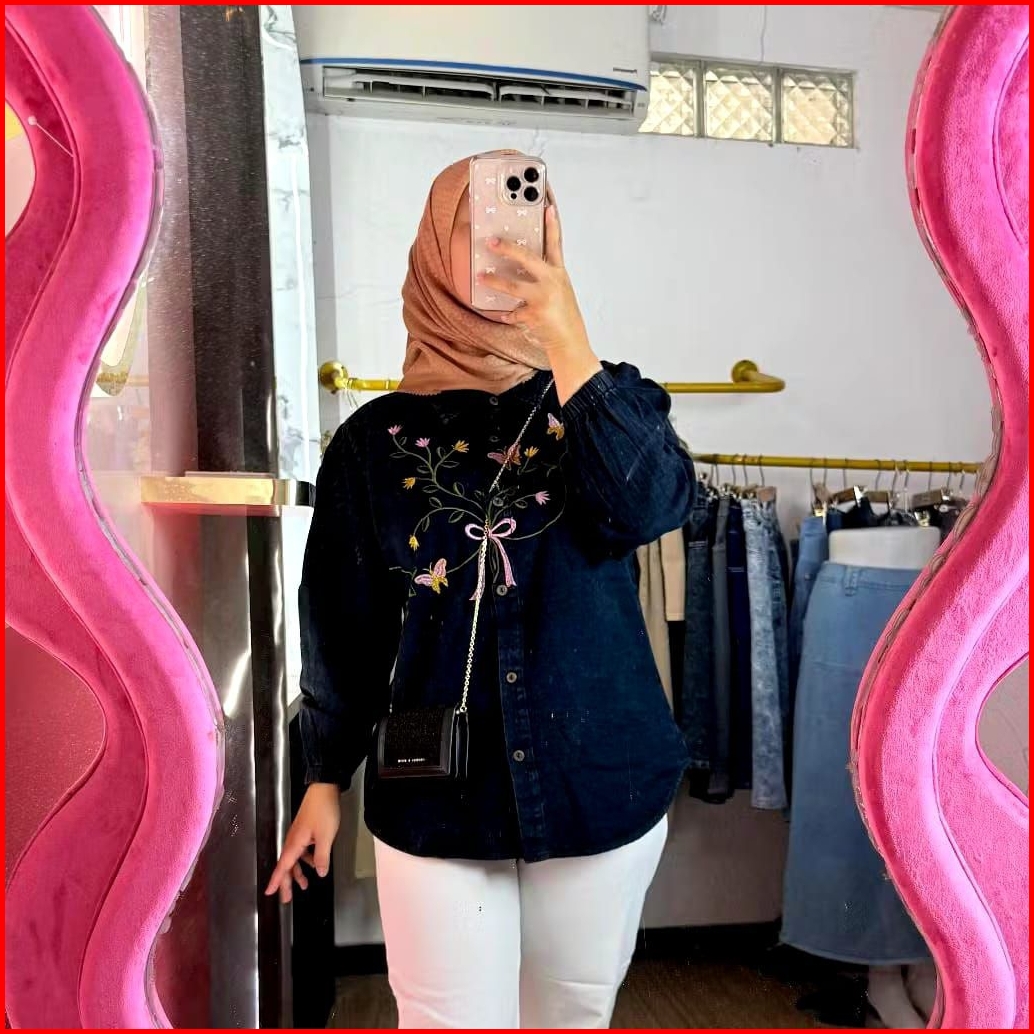 Kemeja Jeans Wanita Oversize Blouse Wanita Motif Bordil Terbaru