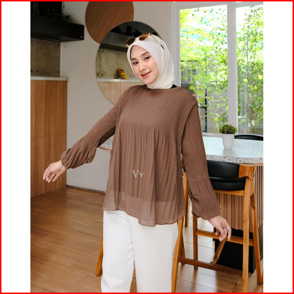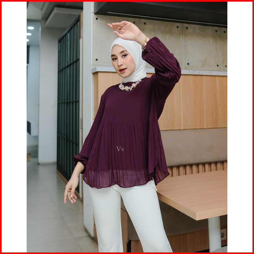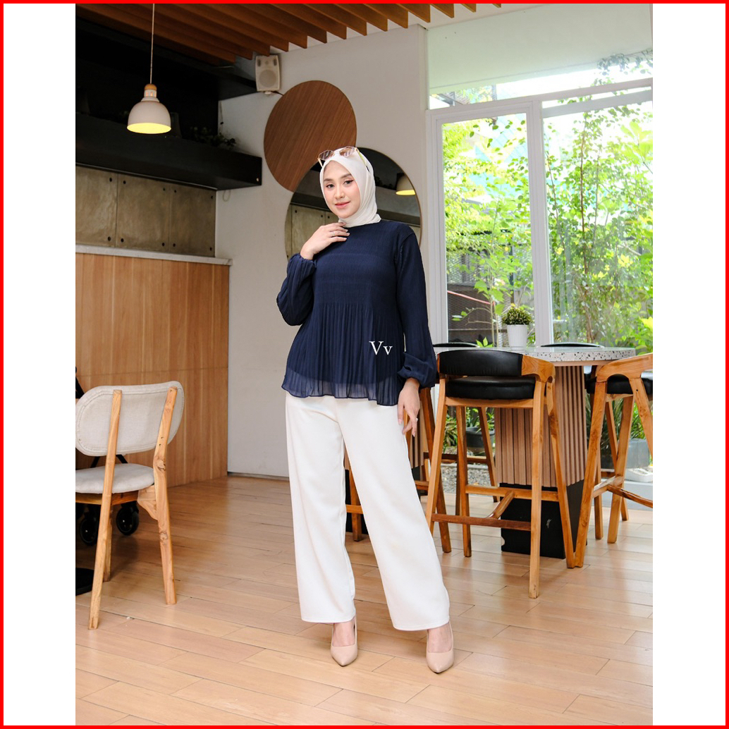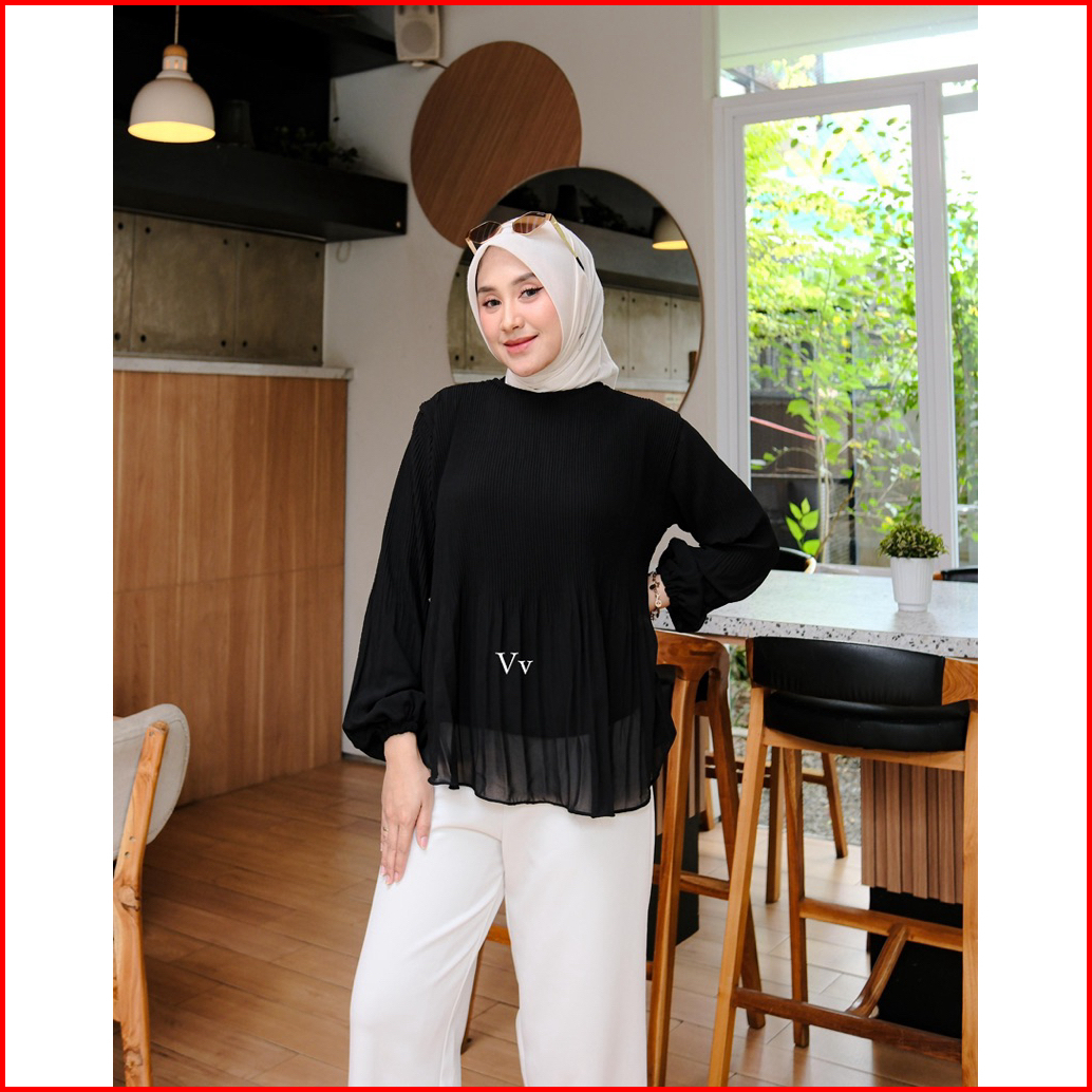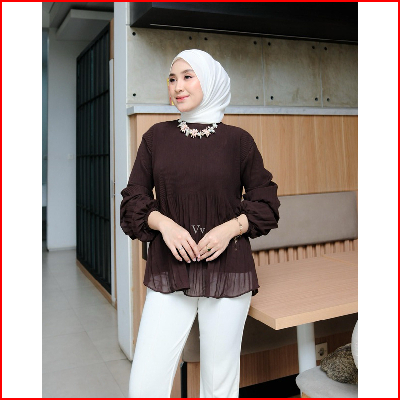 Nadeline Blouse Atasan Wanita Ceruty Babydoll Premium Plisket