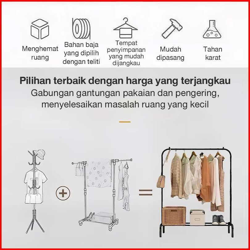 Stand Hanger Gawang Besi Kuat Stand Hanger Single Minimalis Gantungan Pakaian Portable