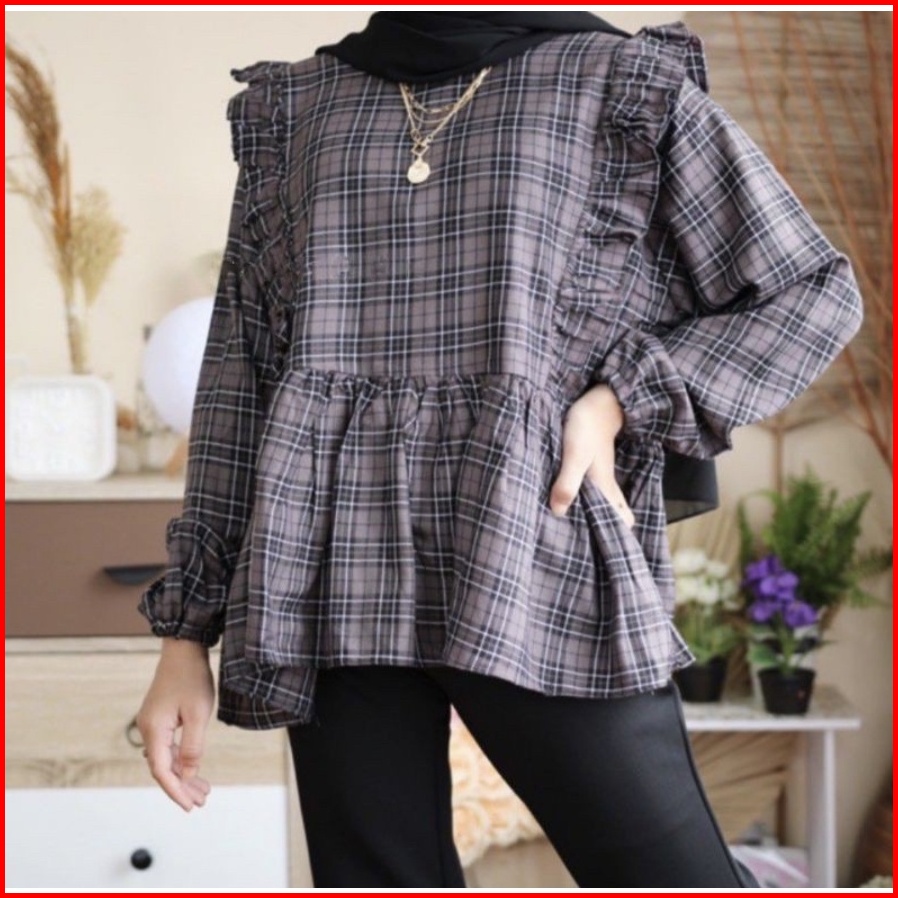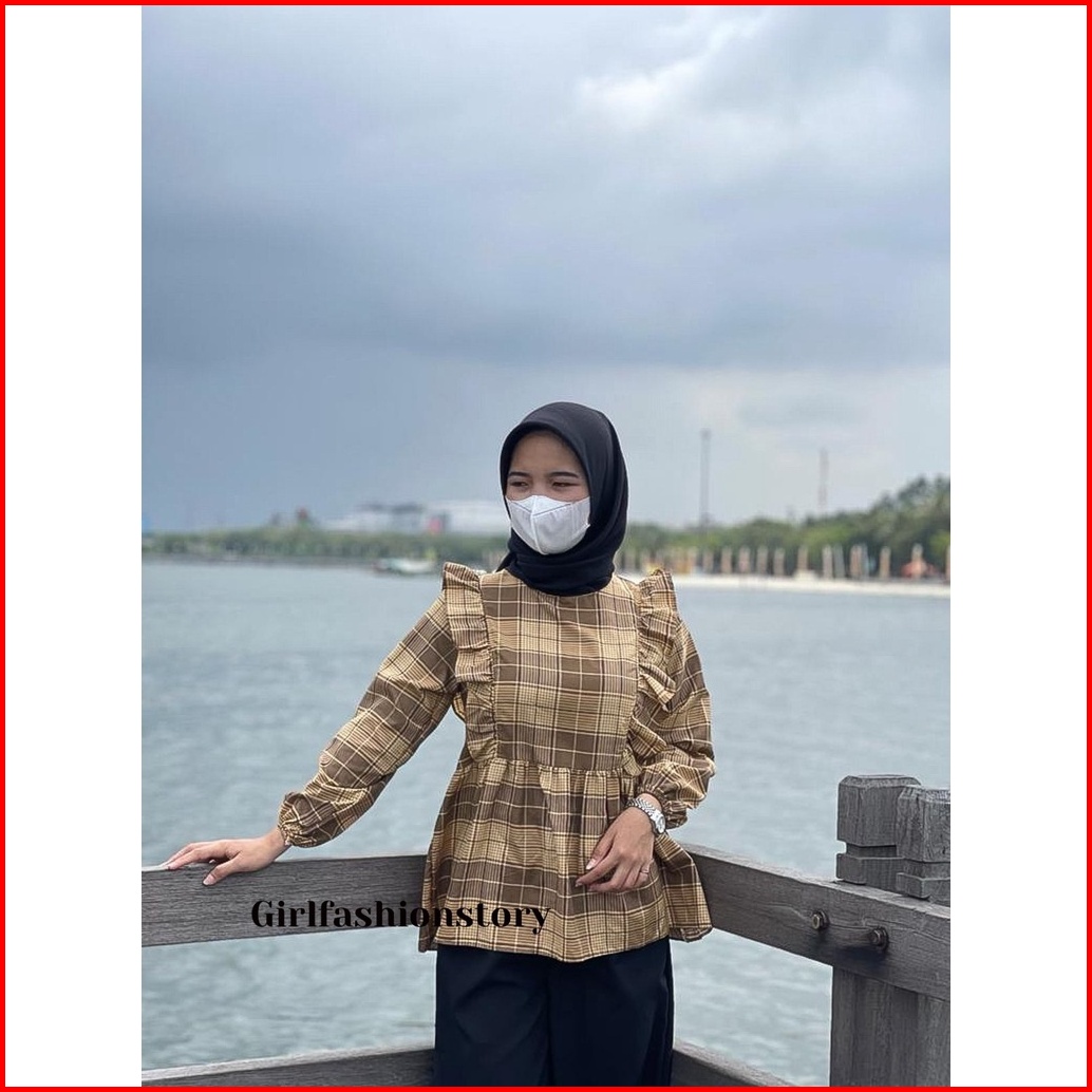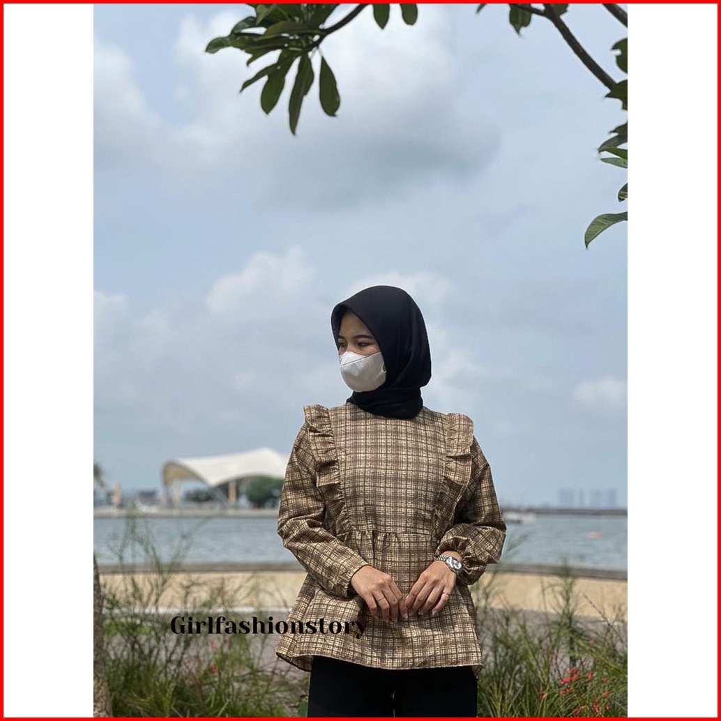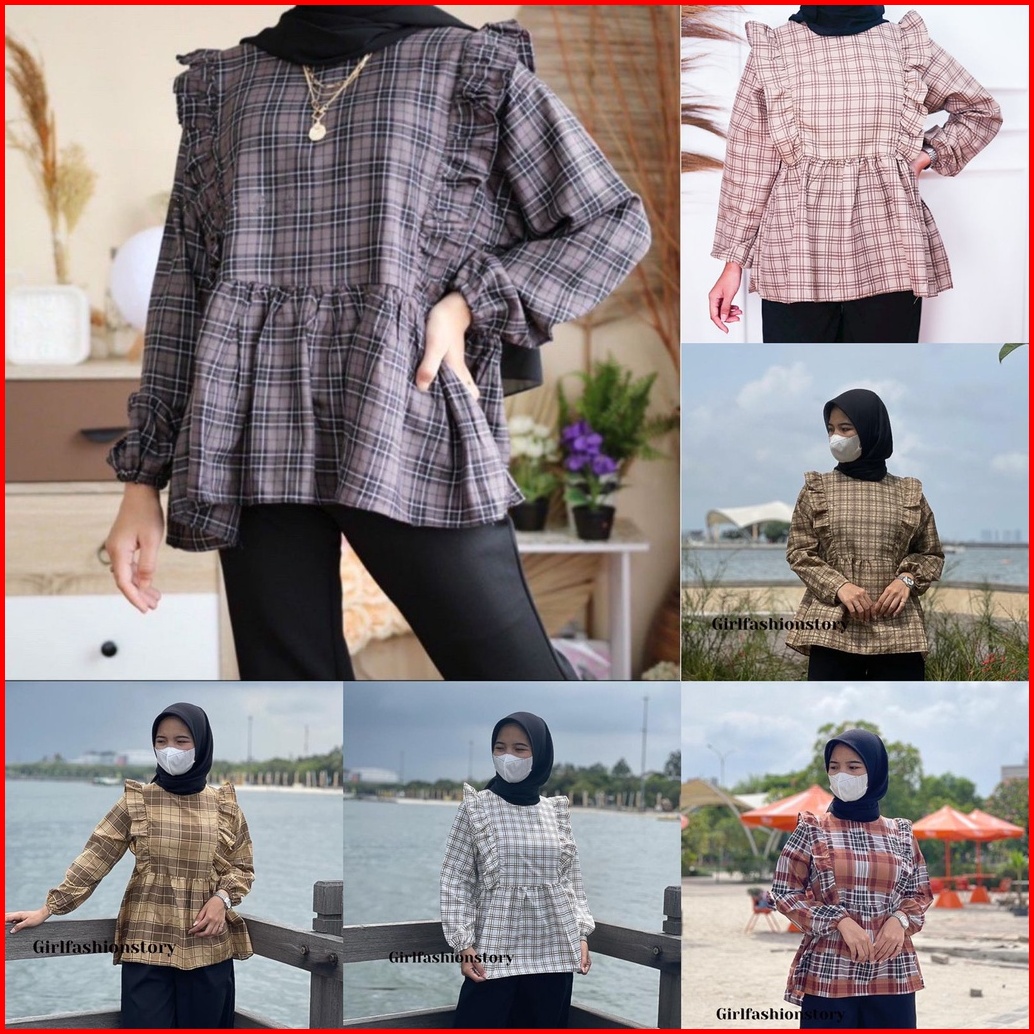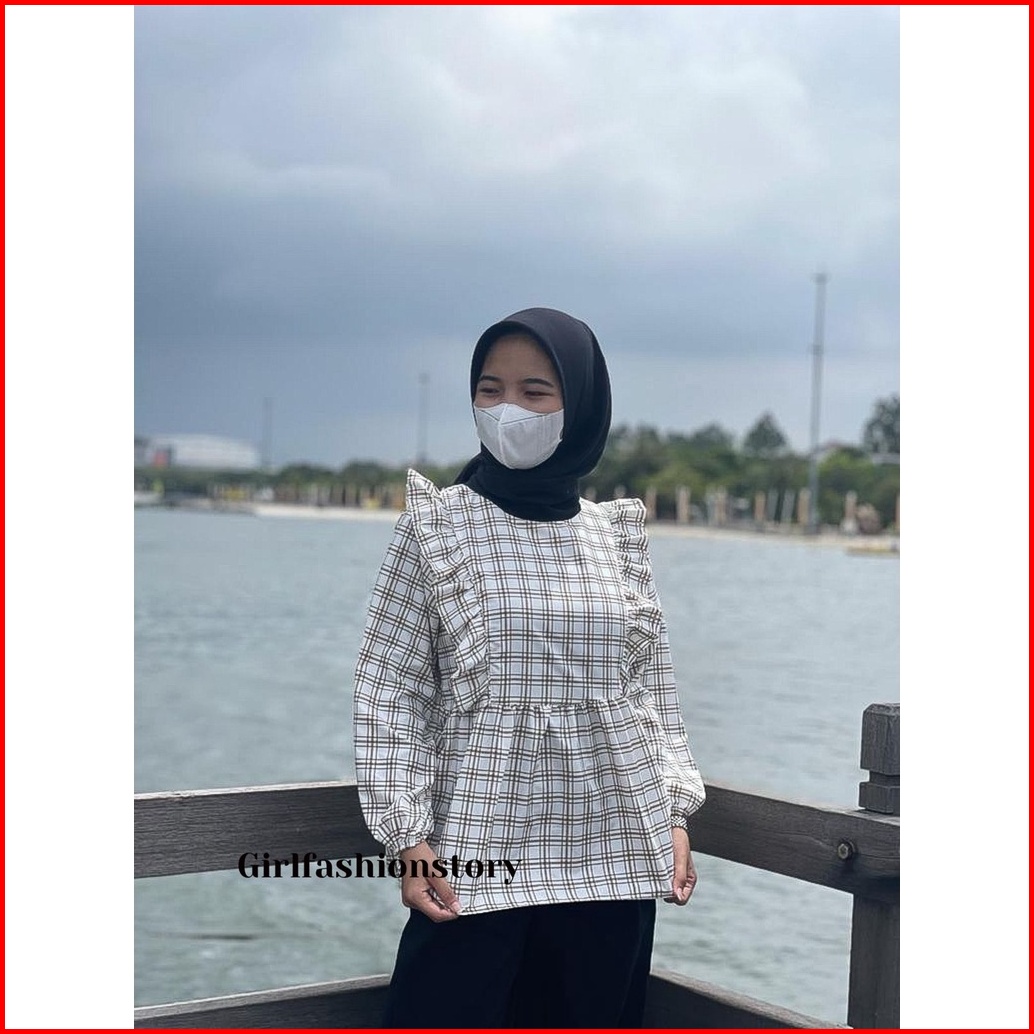 Girlfashionstory Original At Cirelea Blouse Katun Kotak-kotak