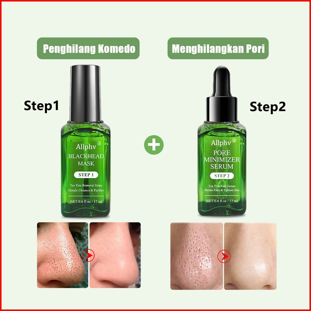 Bpom Allphv Tea Tree Blackhead Mask Set - Step1 Masker Komedo Hidung Pengangkat Komedo Step2 Pengecil Pori-pori