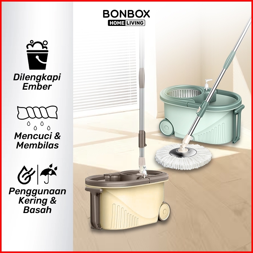 Bonbox Homeliving - Alat Pel Lantai 2 In 1 Ember Spin Mop Pemisah Air Bersih Dan Kotor Kain Fiber Berkualitas Hemat Ruan