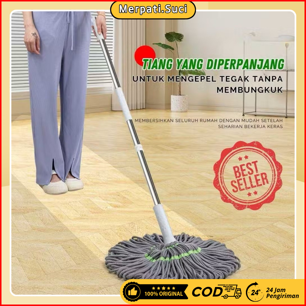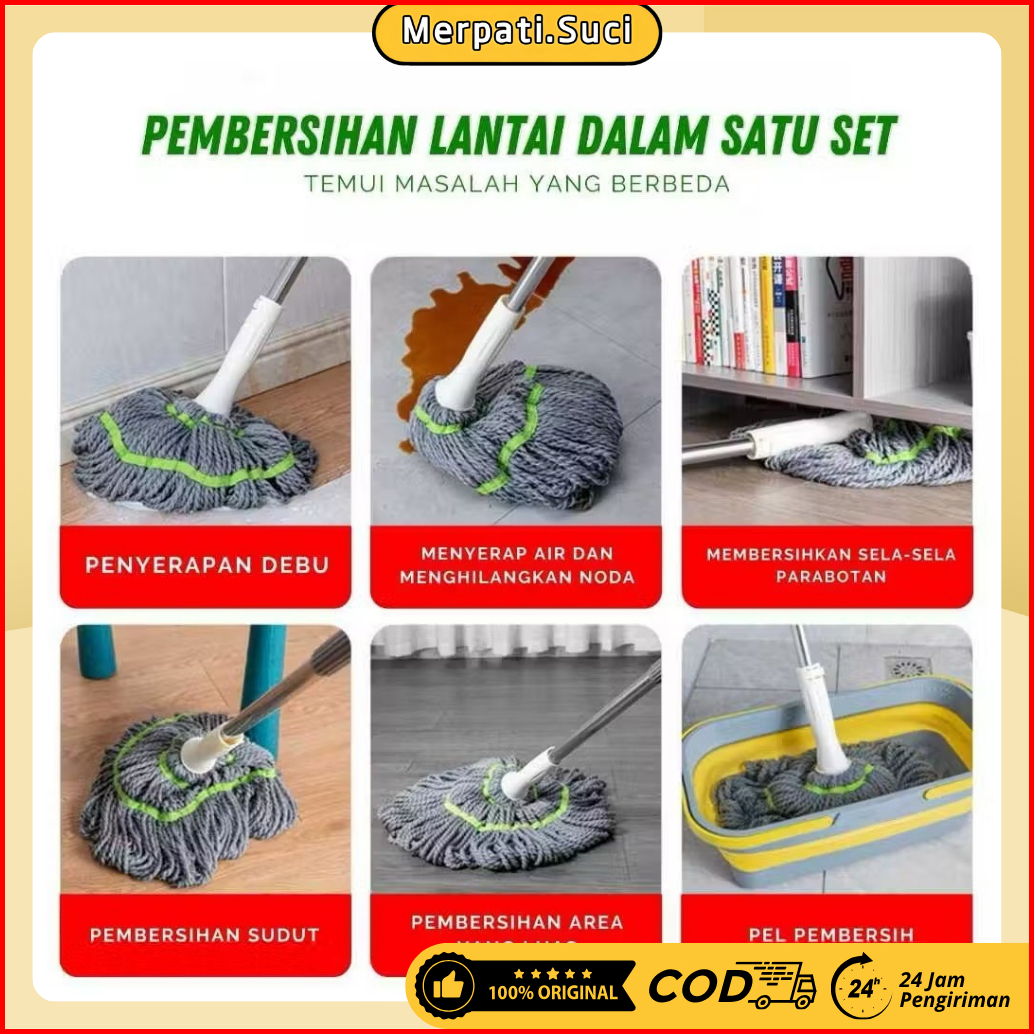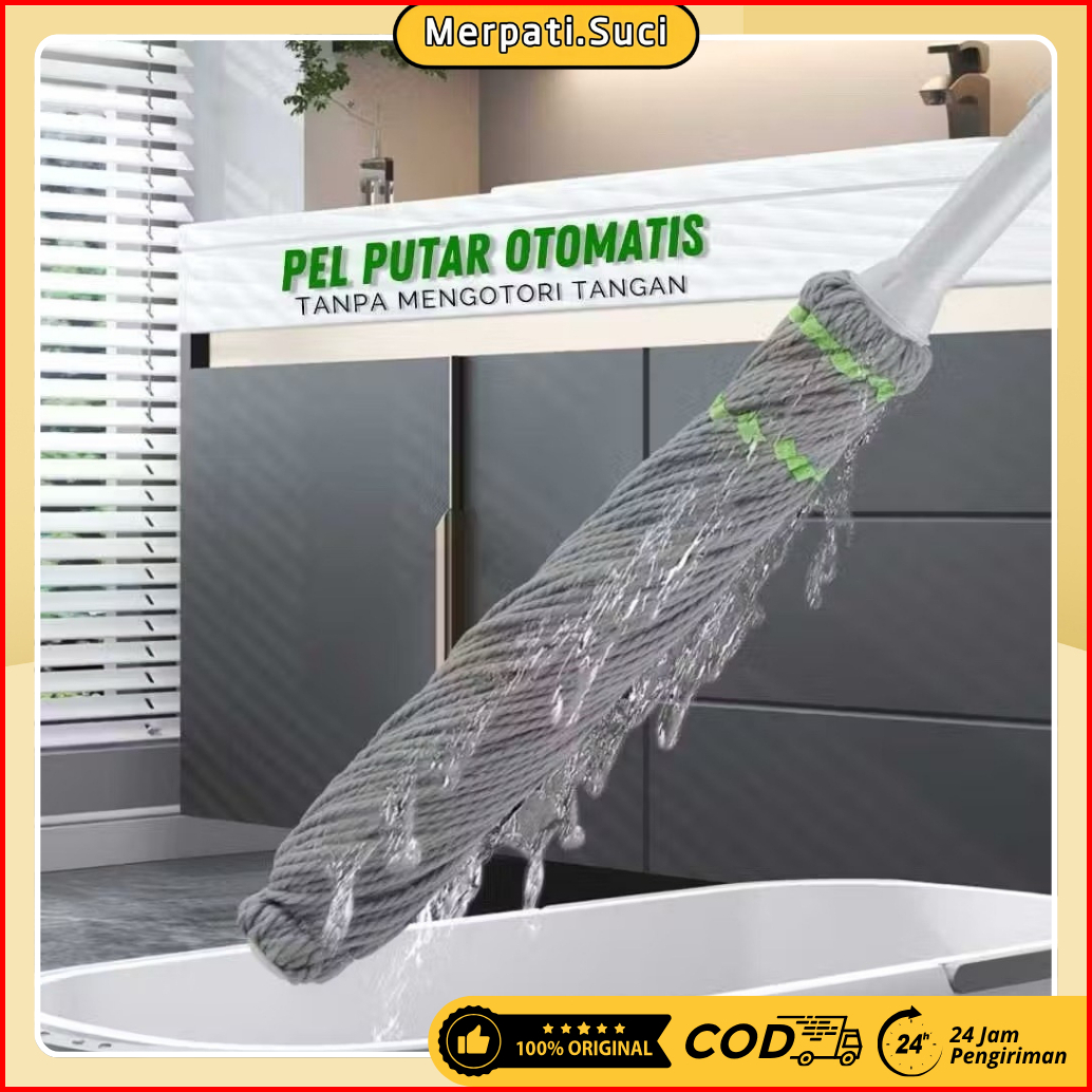 Pel Putar Otomatis Pembersih Lantai Twist Mop Pemeras Otomatis 1set Pel Putar 360 Derajat