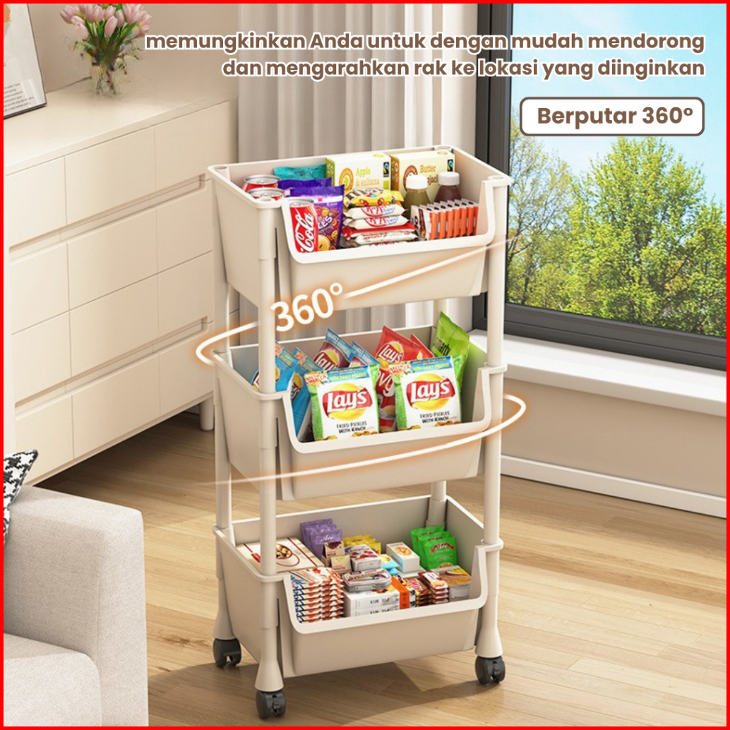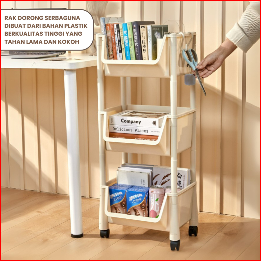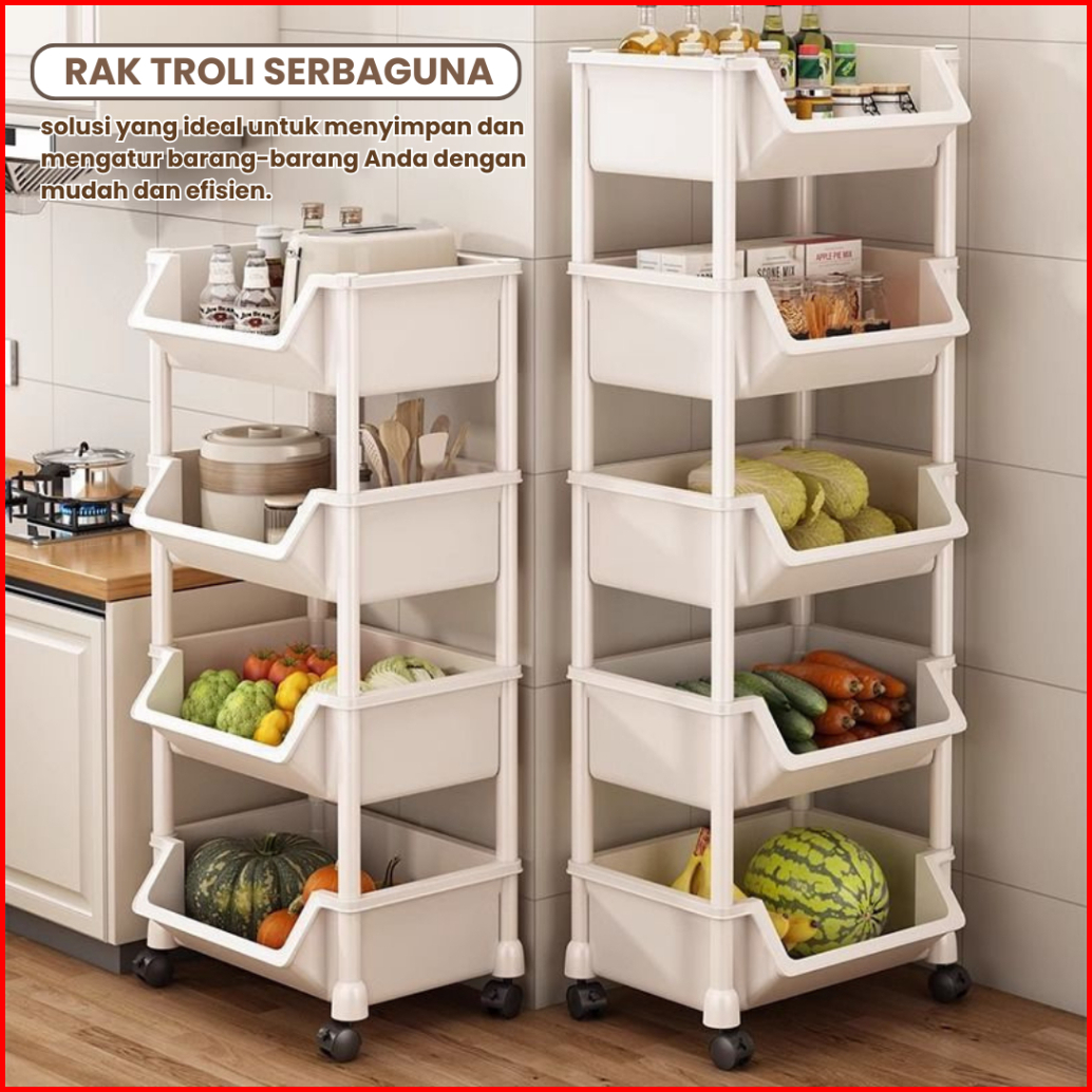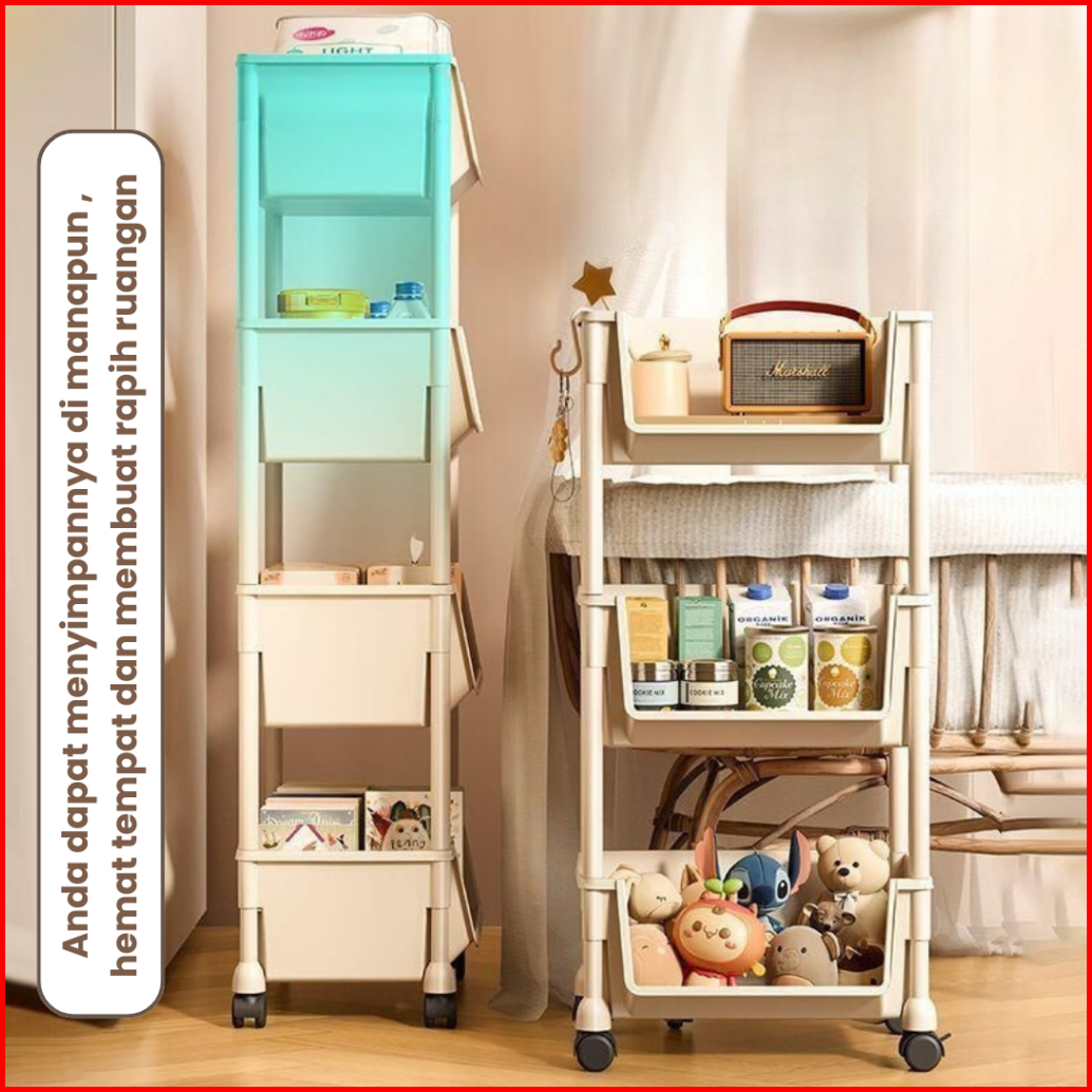 Qisoo Rak Susun Serbaguna Dengan Roda Portable Dapur Rak Buku Anak Plastik Mainan Kamar Mandi