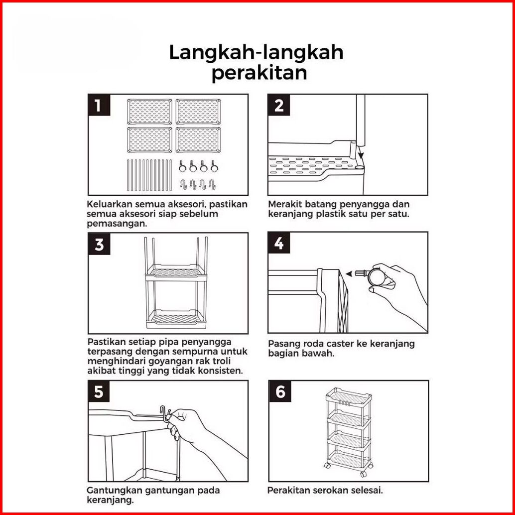 R P Ready Rak Susun Serbaguna 2-5 Tingkat Bahan Plastik Dengan Roda Rak Dapur Square