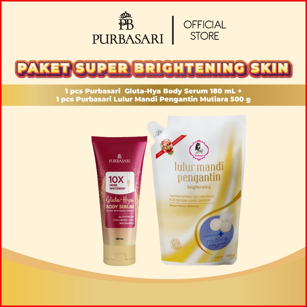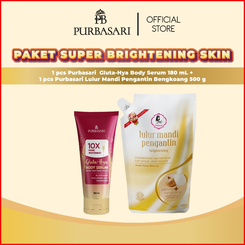 Paket Super Brightening Skin Purbasari Body Serum Gluta Hya 180ml Lulur Mandi Pengantin 500gr