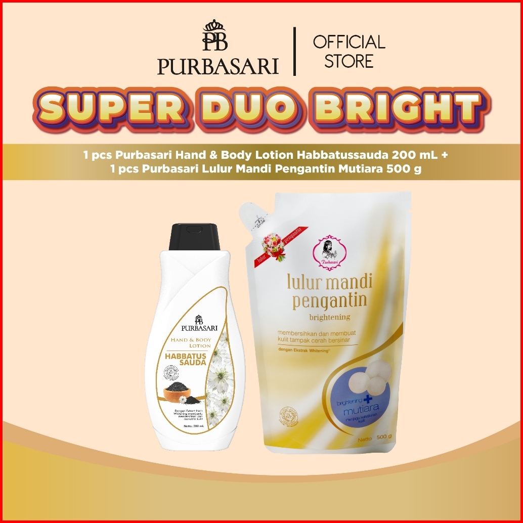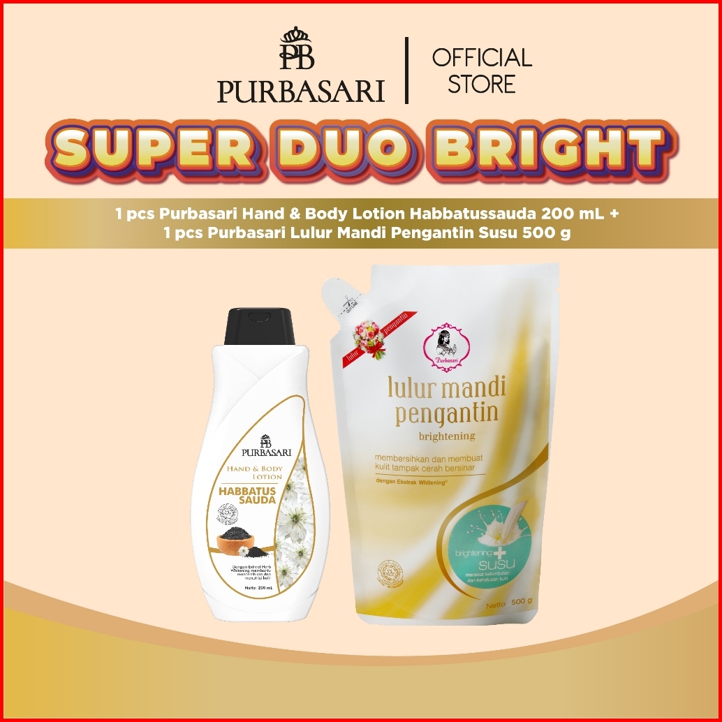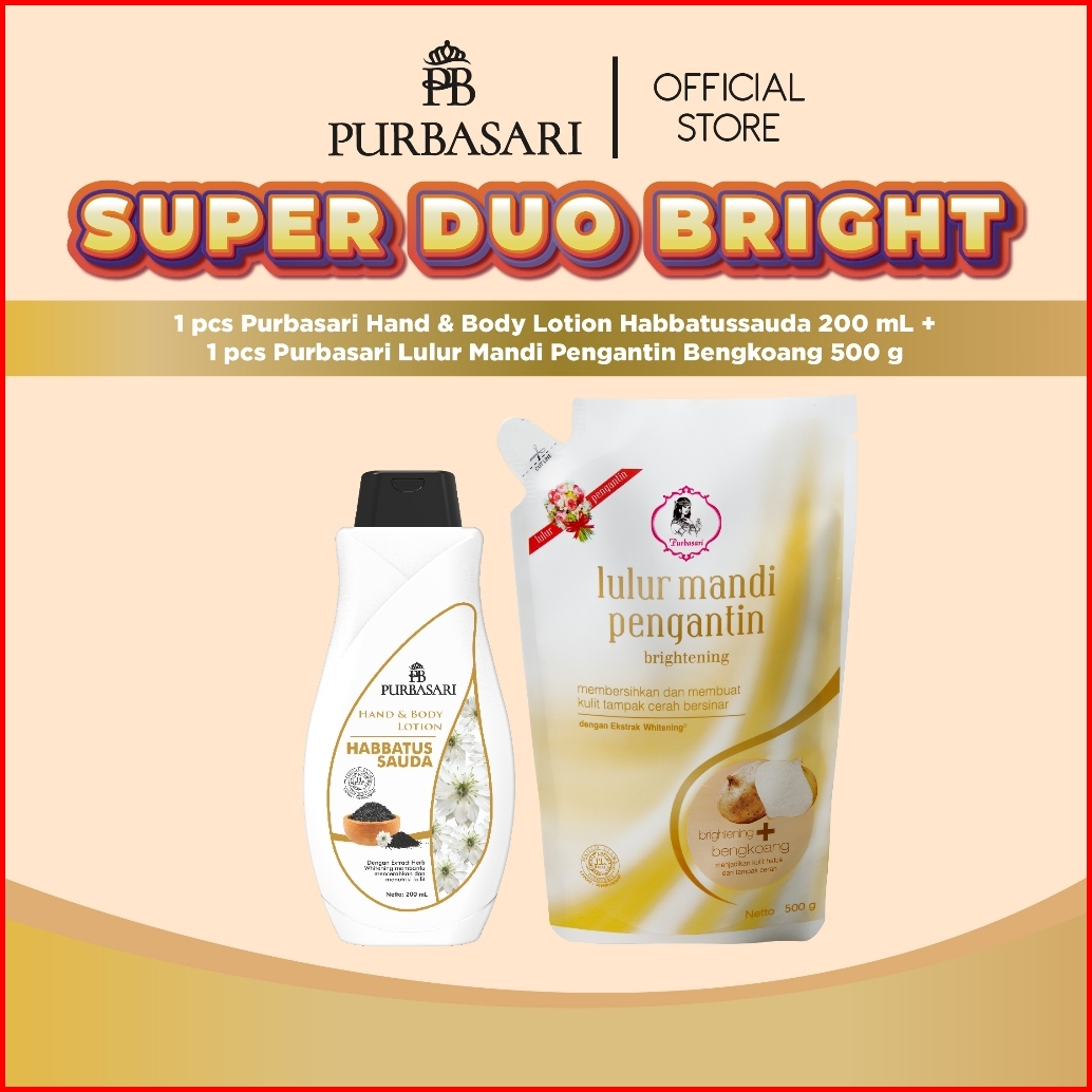 Combo Super Duo Bright Lulur Mandi Pengantin 500gr Hand Body Lotion Habbatusauda 200ml
