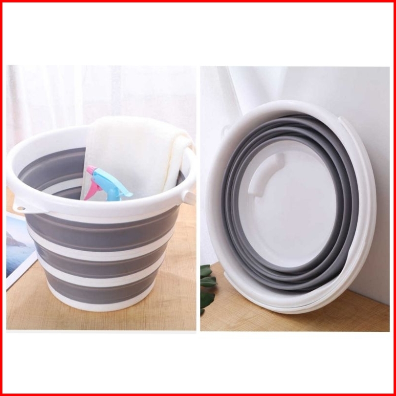 Ember Lipat Water Bucket Foldable Collapsible 10 Liter- Warna Gray
